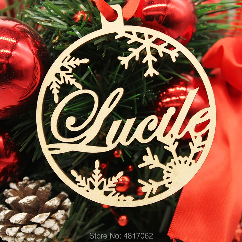 Рождественские снежинки на заказ Снежинки Деревянные рождественские шары персонализированное украшение Лазерная вырезка названия рождественские пользовательские подарочные бирки