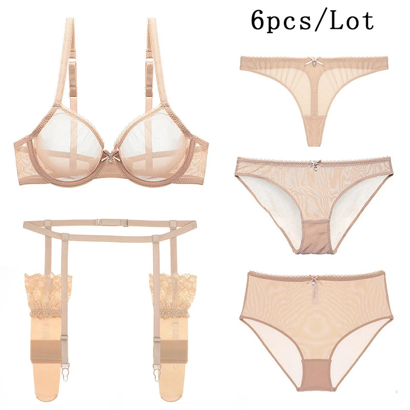 Комплект женского нижнего белья из бюстгальтера, трусиков, подвязок, чулок, стрингов и трусов с высокой талией, комплект из 6 предметов