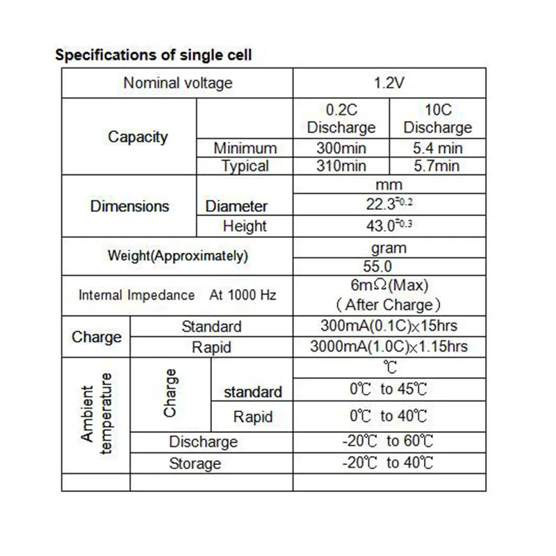 Аккумуляторная батарея C P SC3000mAh 1-4pc ni-mh 1,2 V Sub-C, NiMH SC3.0Ah, скорость разряда 10C 30A