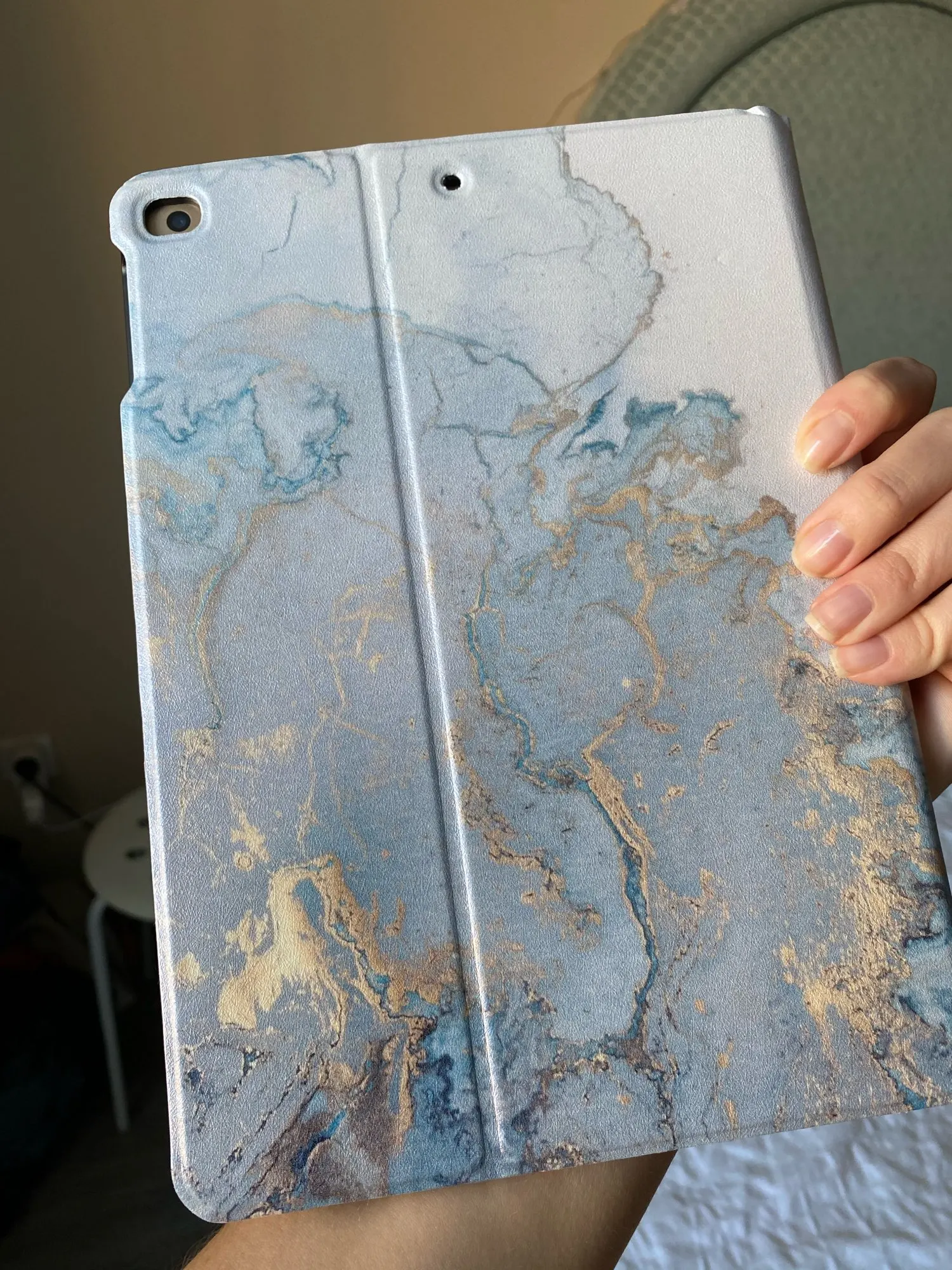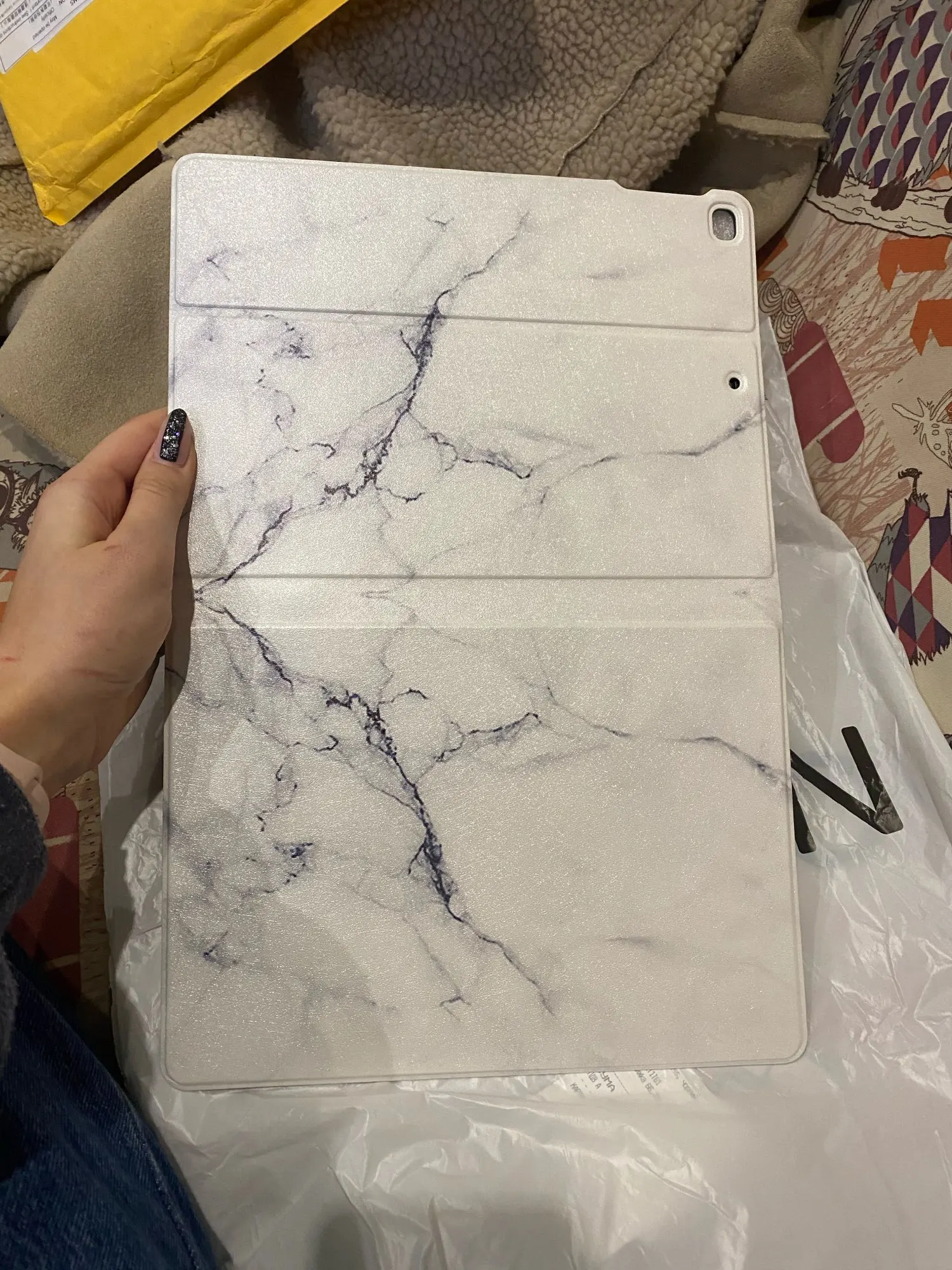 En для iPad 10,2, чехол выглядит очень хорошего качества; Материал довольно жесткий и жесткий; Он имеет все слоты для микрофонов, динамиков и т. Д. На вашем сайте; мармолиат выглядит очень мило, ничего не расстраивается. Я в восторге