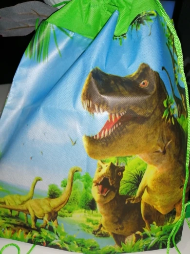 Тип товара: Подарочная сумка на шнуркеМатериал: нетканый материалЦвет: как показано на фотографииРазмер: 270*360 ммТема: динозавр