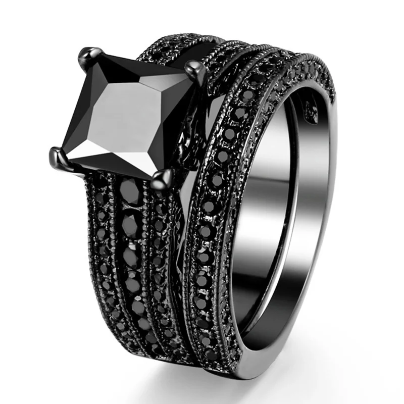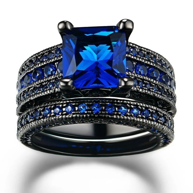 Модный женский набор колец, модные кольца с черным/синим цирконием для женщин, ювелирные аксессуары, свадебный подарок для помолвки