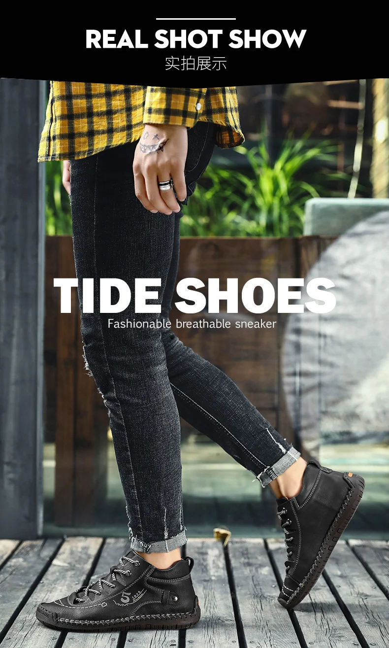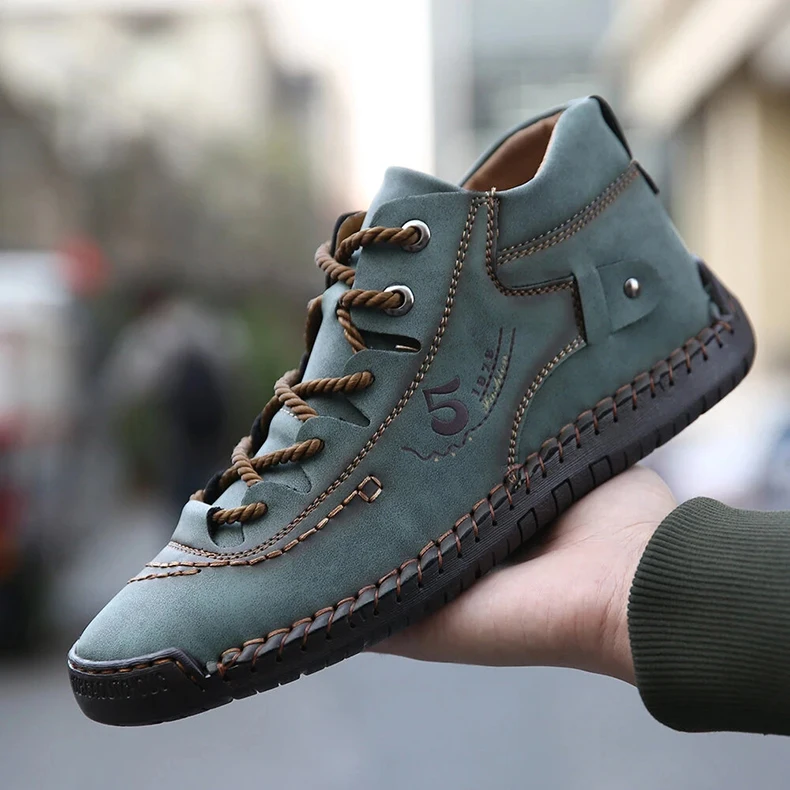 Ботинки мужские кожаные, на меху, теплые, ручной работы