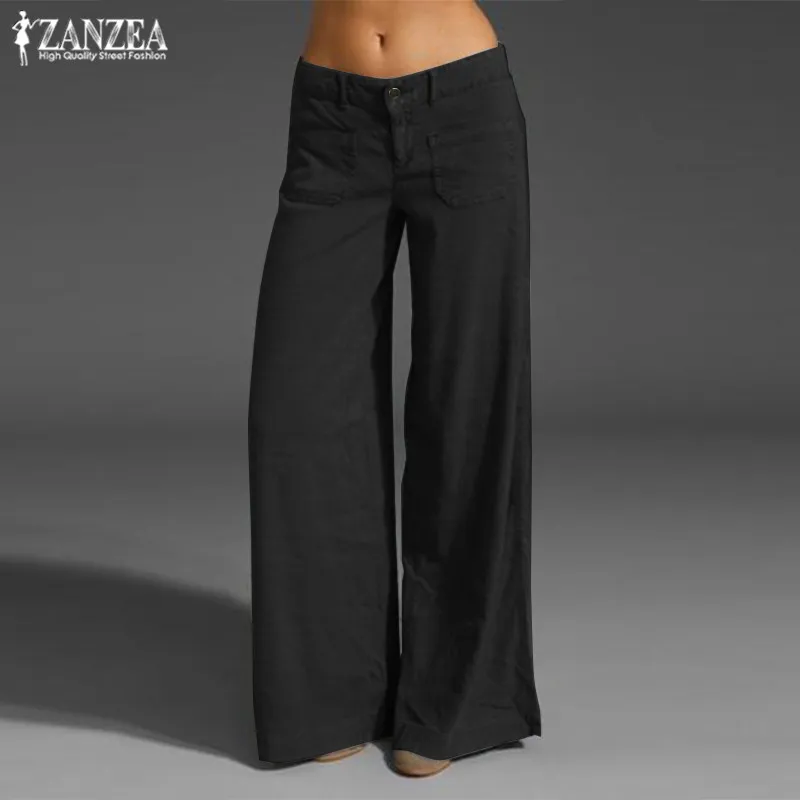 Брюки ZANZEA женские с пуговицами спереди, модные широкие штаны, кафтан, однотонные повседневные брюки с репой, лето 2021