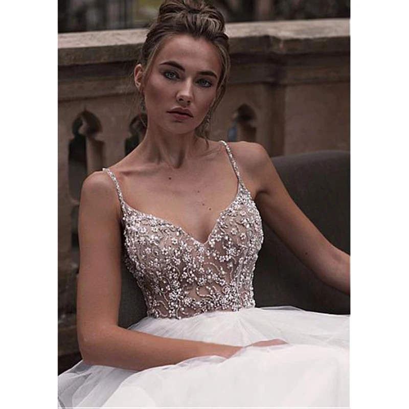 Женское свадебное платье, сексуальное бальное платье с V-образным вырезом и открытой спиной, свадебные платья с бусинами, свадебные платья, платье принцессы, 2022