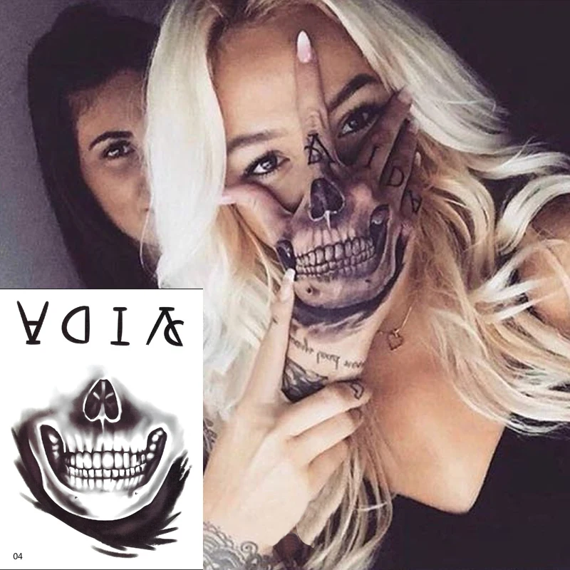 10 шт.лот, водостойкие временные тату-стикеры на Хэллоуин, Череп, голова, поддельные тату, ручная Роза, тату для ног, тату для девушек, мужчин, женщин, вечерние