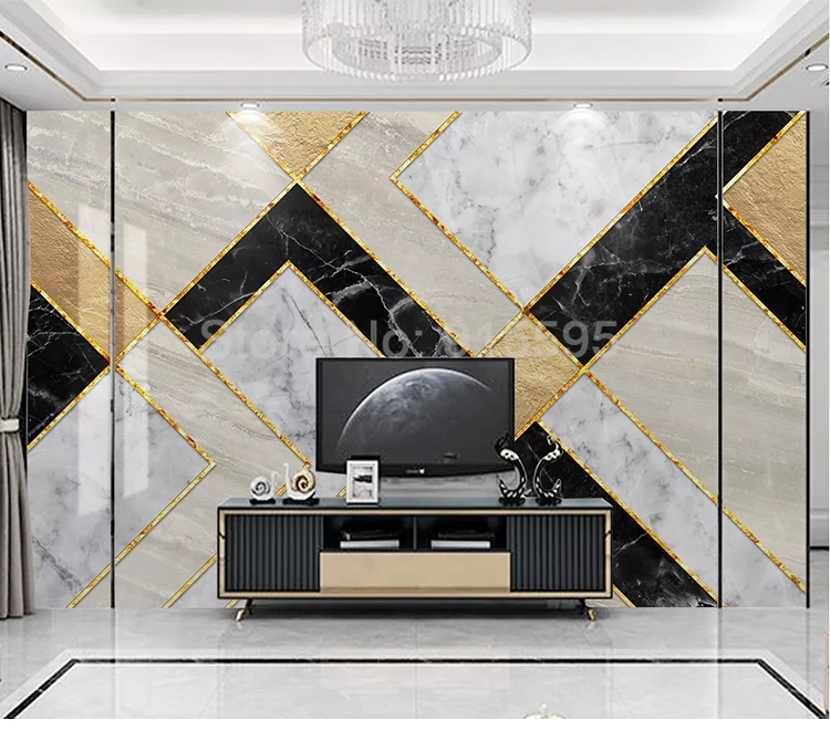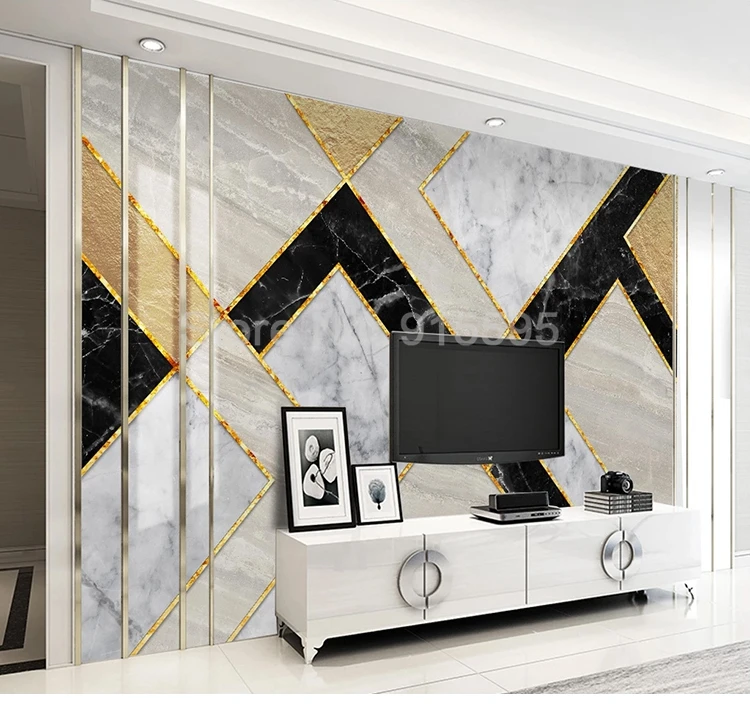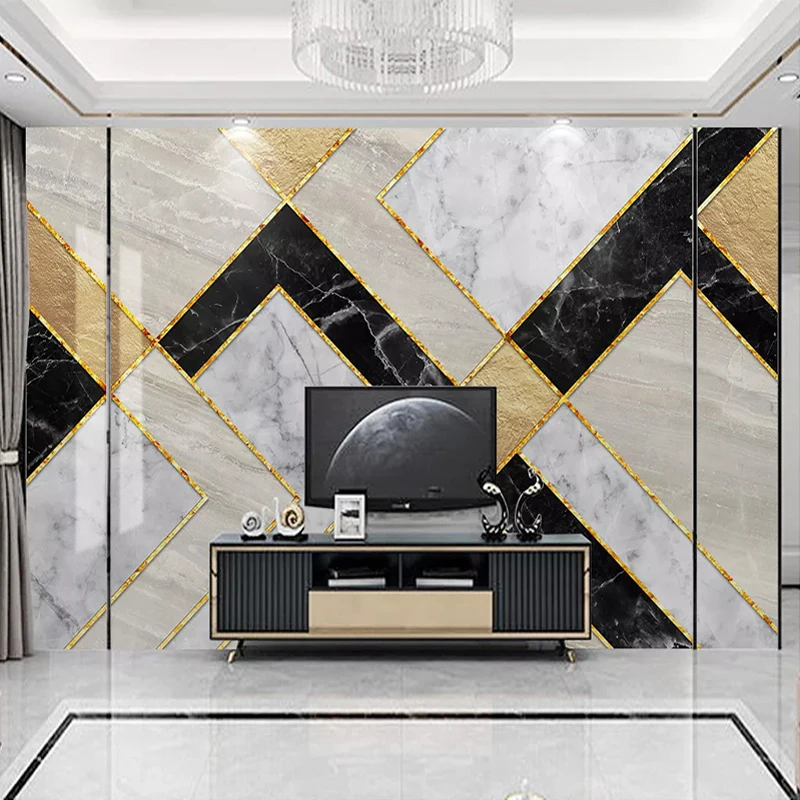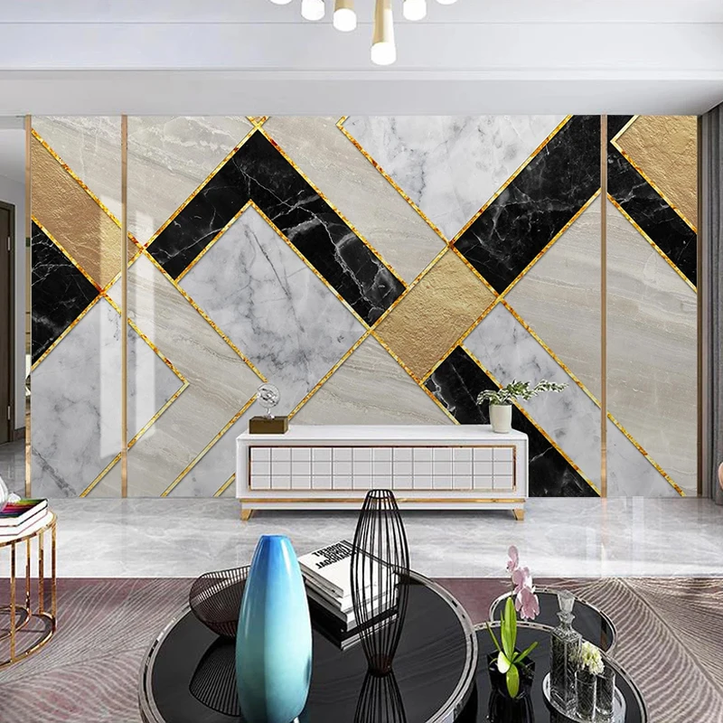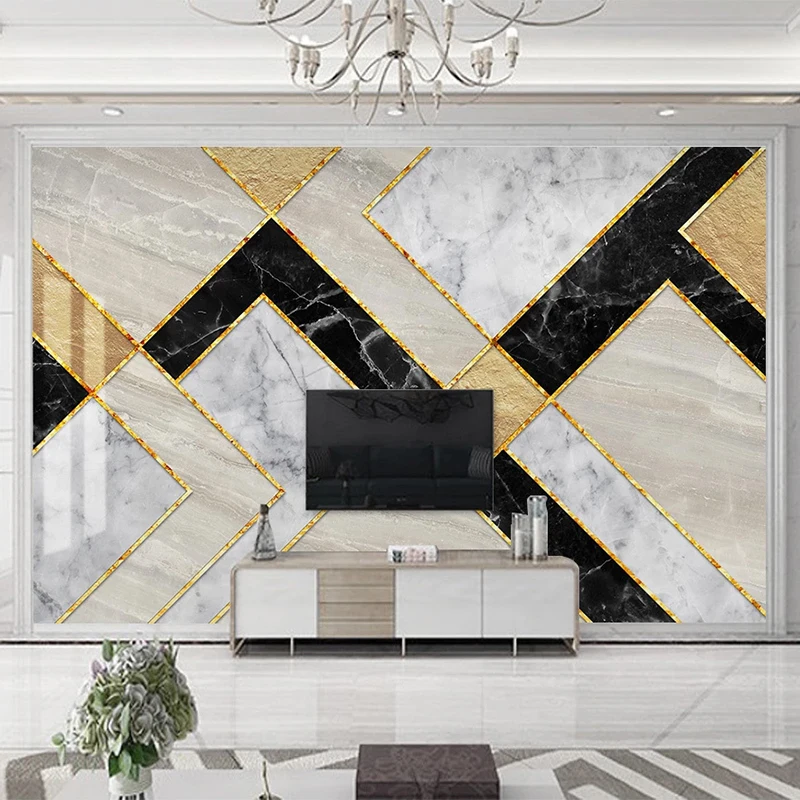 Настенная 3D фотобумага под заказ, Современная Геометрическая мраморная Водонепроницаемая самоклеящаяся настенная бумага для гостиной, фона для телевизора, Декор