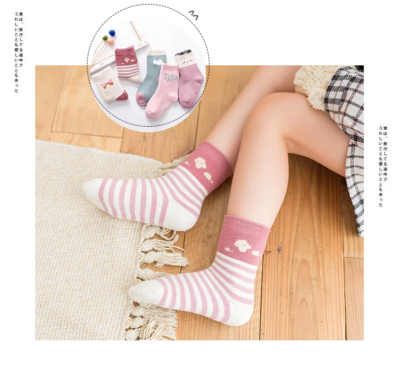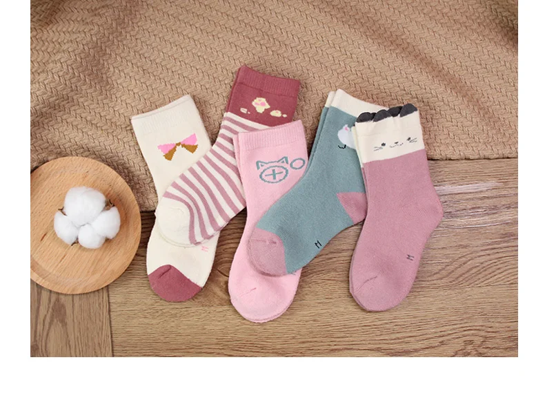 Носки детские зимние из хлопка, с мультяшным принтом, 5 пар