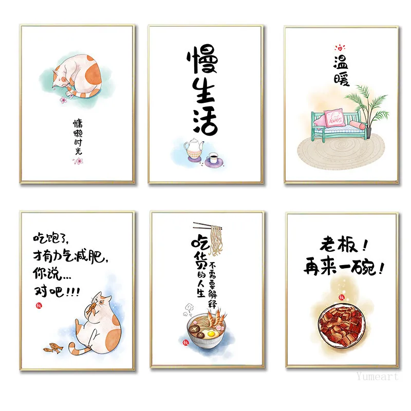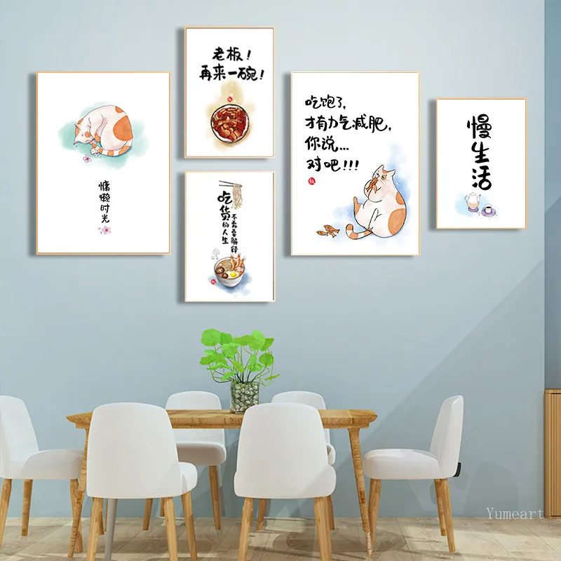 Современный декор для столовой, холст, картина в японском стиле, постер с лапшой, кошкой, Настенная картина, простой кухонный Декор