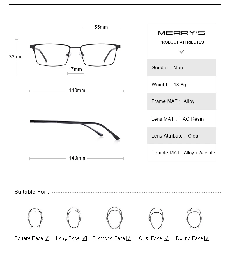 Мужские очки MERRYS, дизайнерские очки из сплава в деловом стиле , ...
