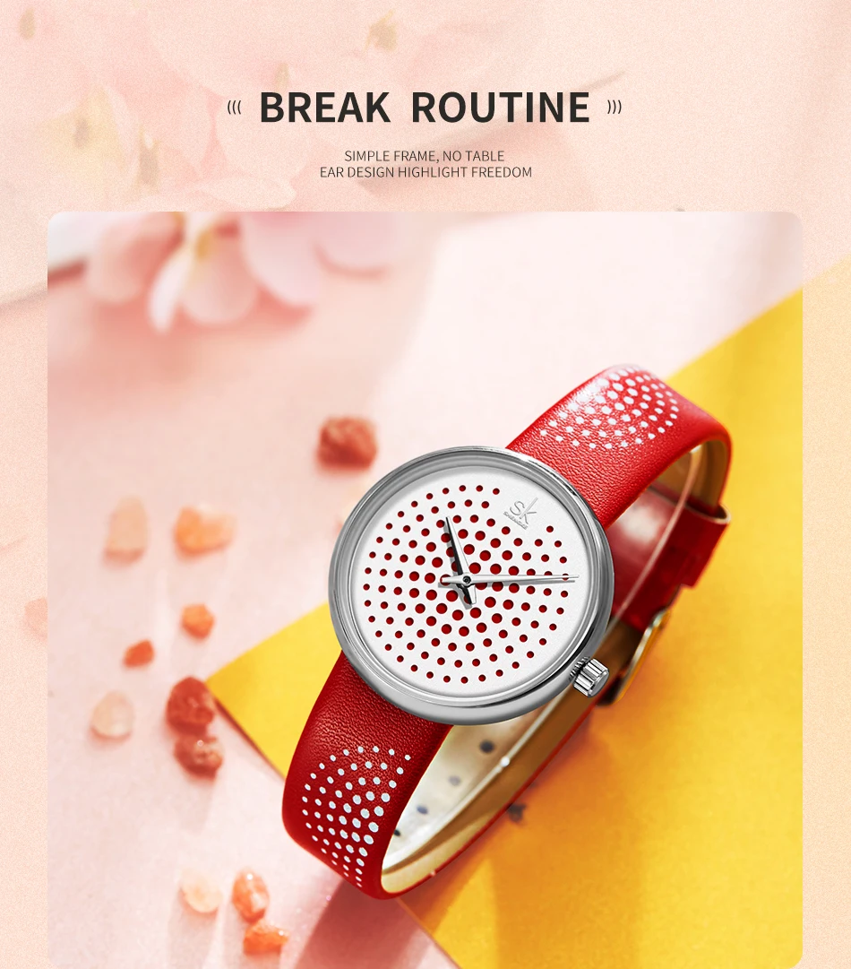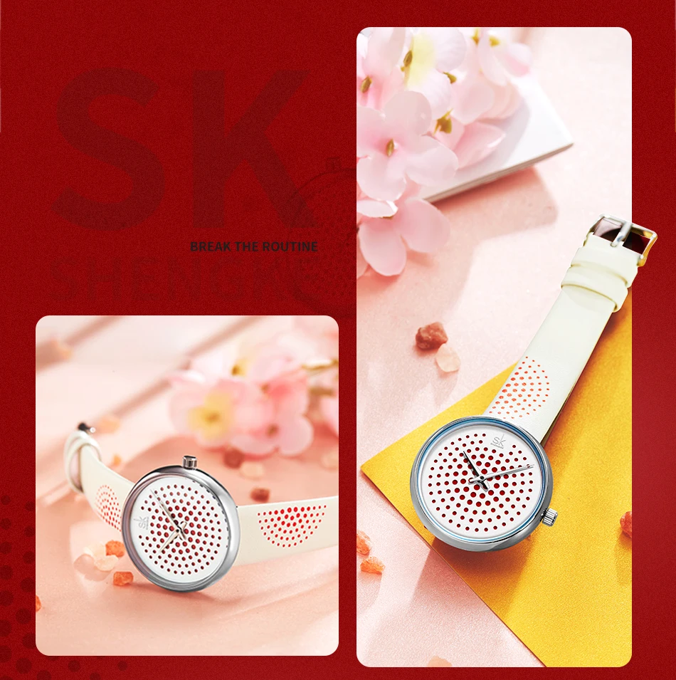Часы Shengke женские кварцевые в клетку, дизайнерские Роскошные Классические наручные, с кожаным ремешком