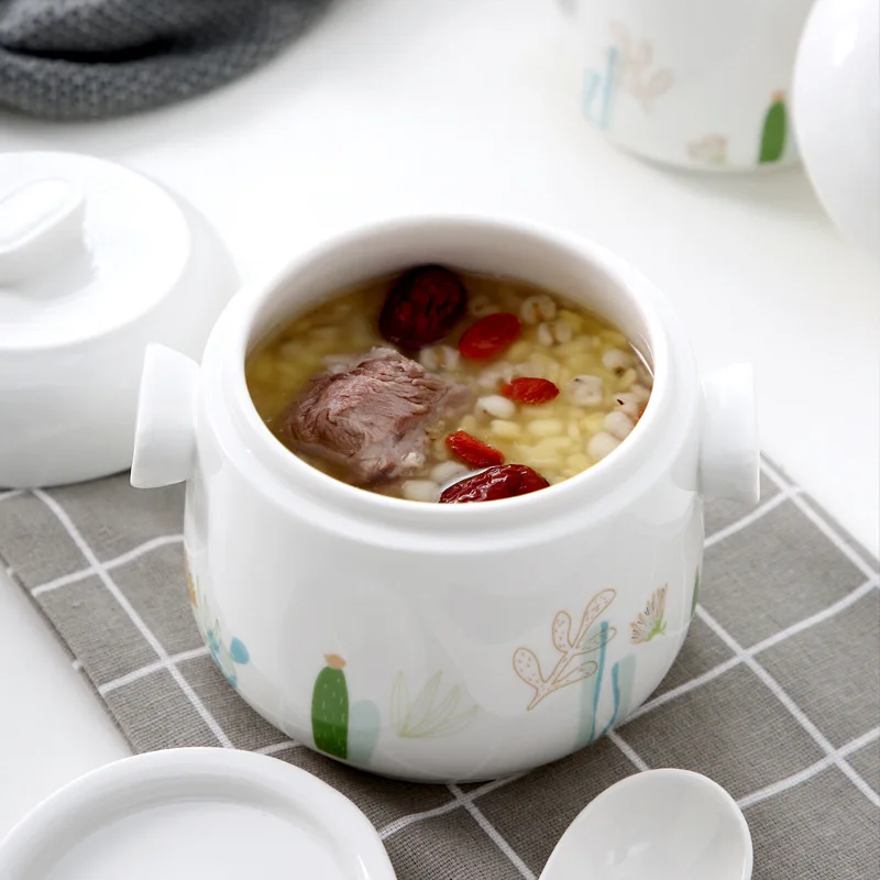 Кастрюля с двойной крышкой и ручкой для супа, миска для супа, чашка для пропаривания для мяса, говядины, яиц, керамическая медленная Варка, Большая маленькая