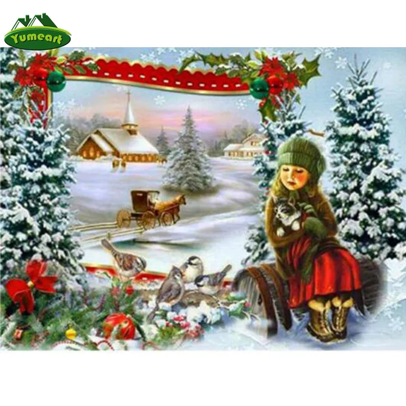 YUMEART 5D Diy Алмазная вышивка крестиком на рисунке, рождественские декорации вышивка стразами девушка квадратная Алмазная мозаика фотографии поделки своими руками