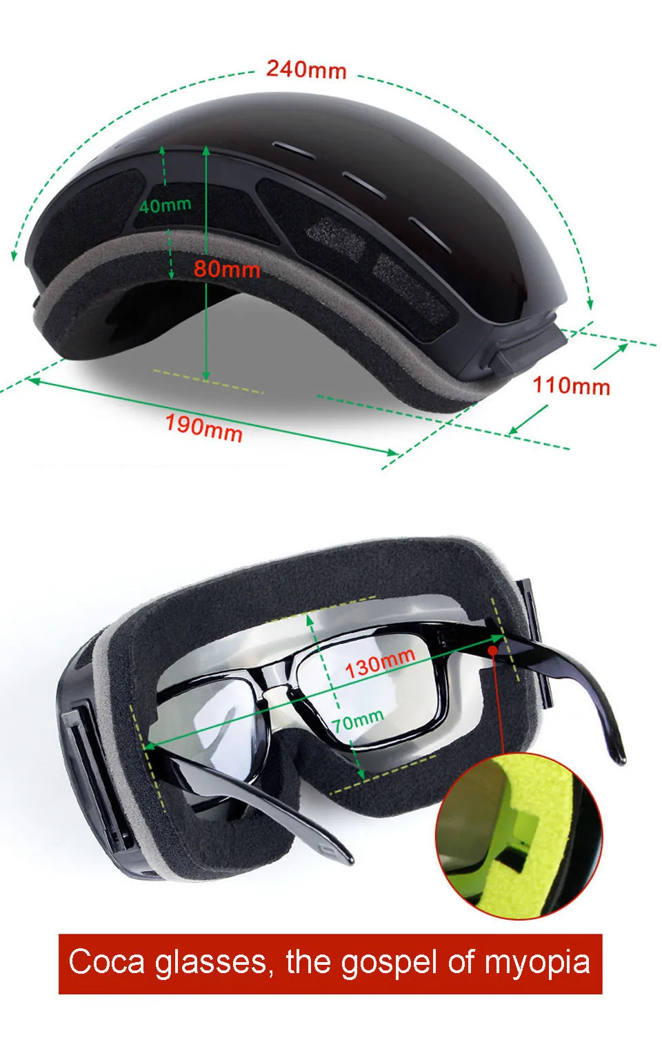 OTG дизайн и шлем совместим-Конструкция OTG позволяет носить очки под очками. Регулируемый ремешок и продуманная форма оправы для лучшей совместимости шлема, предназначен для мужчин, женщин и молодежи.
