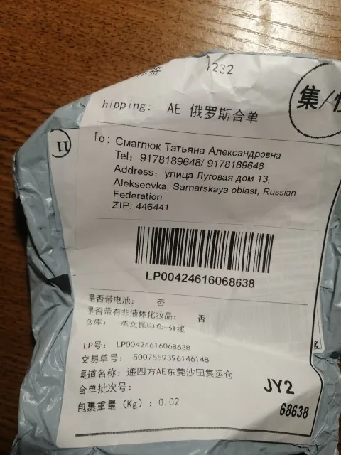 Страна: LT Color: Transparent M Доставка: Cainiao Super Economy Global 23.02.2021
