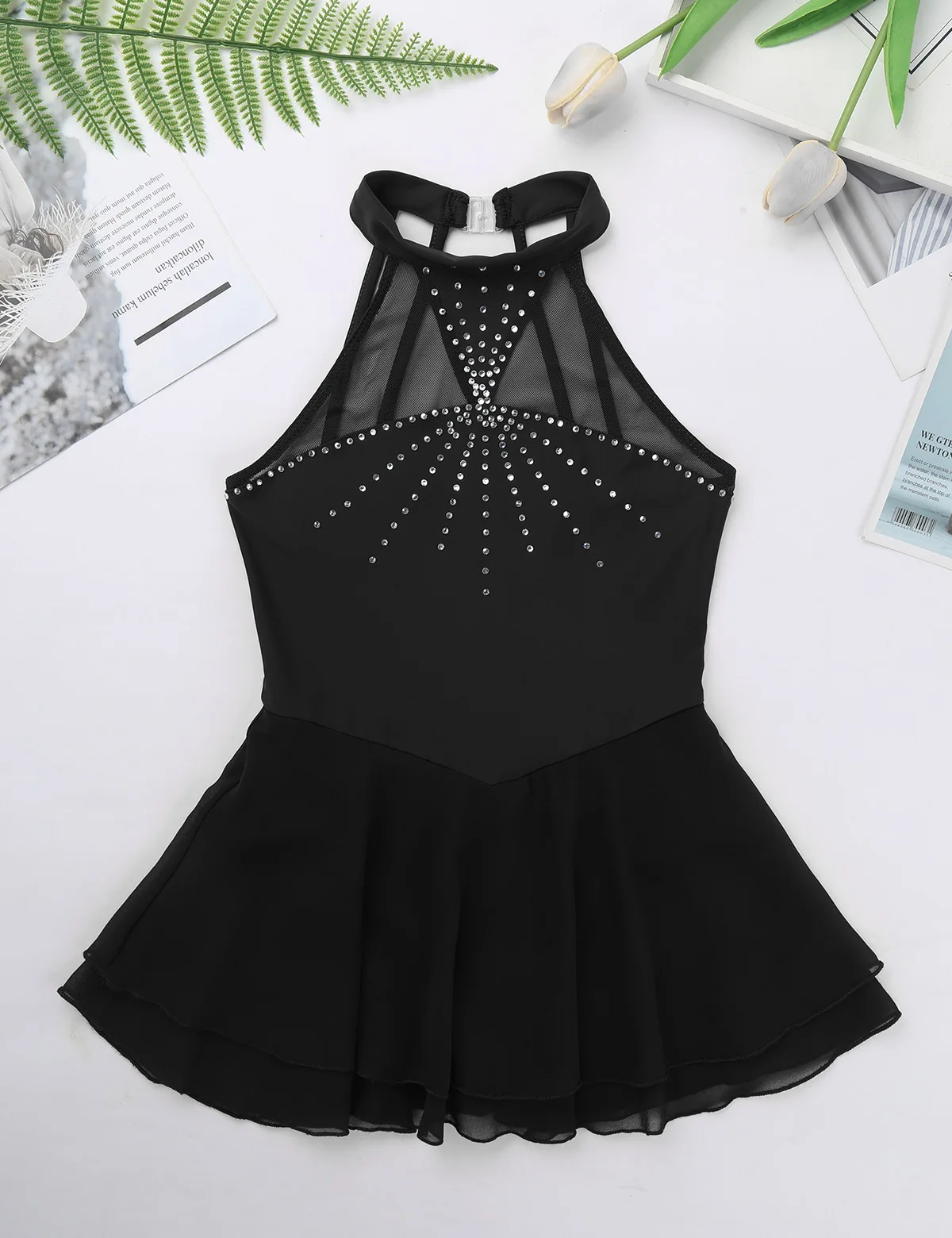 Особенности: Платье для катания выполнено из полиэстера, сетчатого и шифонового материала, ручная стирка. Таблица размеров означает возрастные диапазоны для девочек, но они предназначены только для общего руководства. Без рукавов, горловина-халтер с застежкой. Сращивание сетки между вырезом и грудью. Клетчатая спинка. Мягкая ткань, дышащая и удобная в носке. 2 слоя гофрированной шифоновой юбки крепятся вокруг талии. Дизайн со сверкающими деталями Стразы для повышения уверенности и эффектности. Подходит для фигурного катания, катания на льду, катания на роликах, выступления на сцене и т. Д.