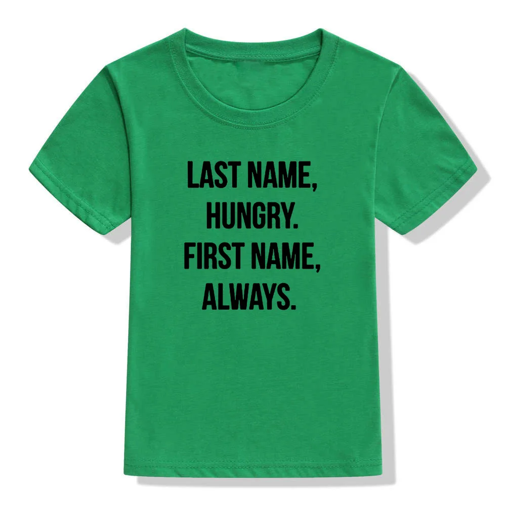 Забавная детская футболка с изображением голодного фамилия, фамилия, всегда с буквами, модная повседневная футболка для маленьких мальчиков и девочек с коротким рукавом, топы