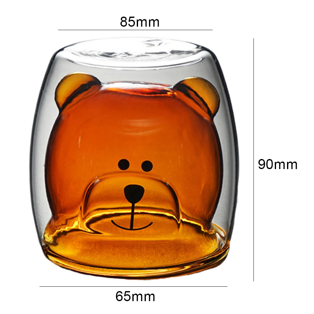 250 мл прозрачная термостойкая стеклянная чашка с двойными стенками в форме медведя, чашка для молока, чашка для чая, милая стеклянная чашка для питья, из прозрачного стекла, чашка для кофе, майка