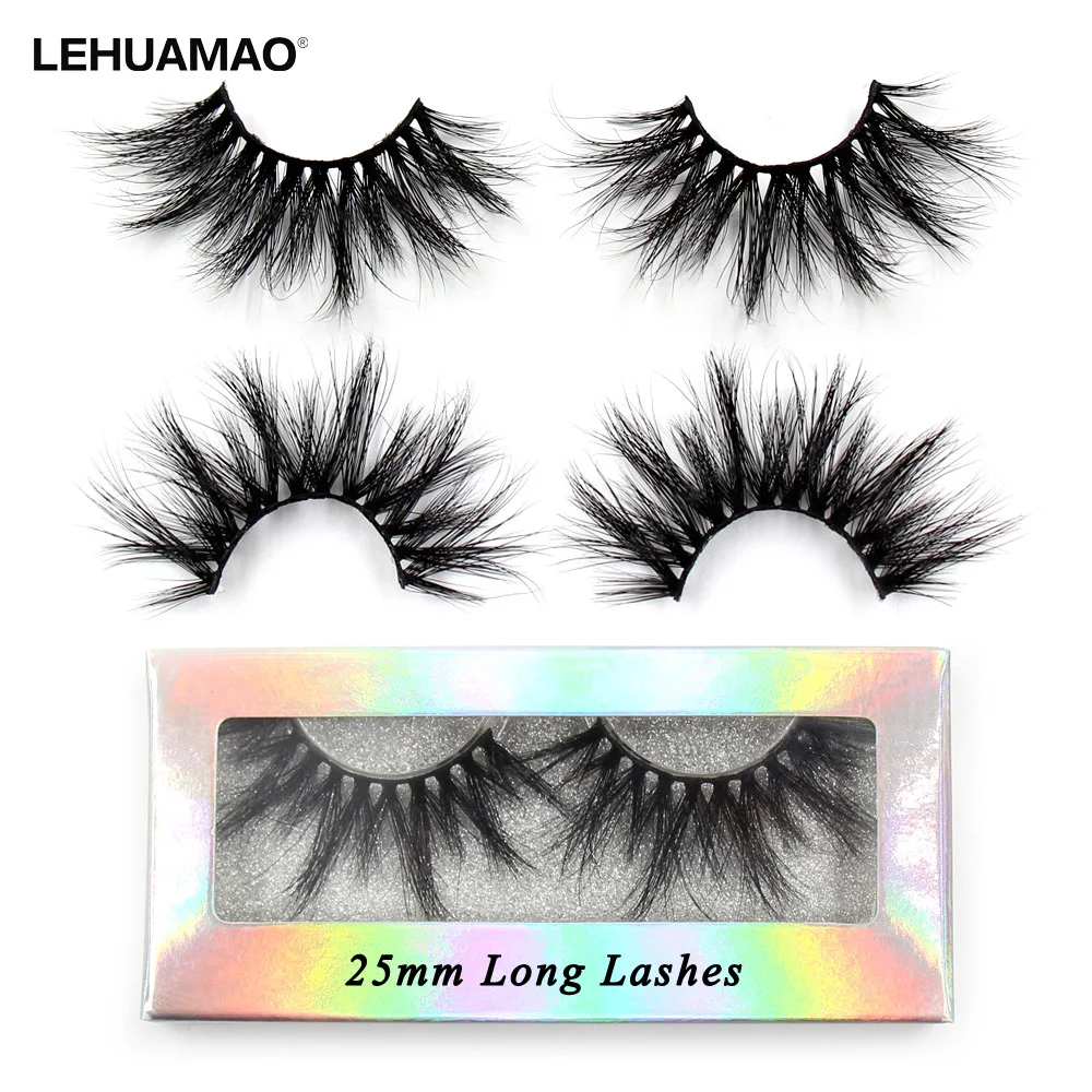 LEHUAMAO 5D накладные ресницы 25 мм норковые ресницы Роскошные норковые пушистые ресницы драматические натуральные длинные ресницы голографическая цветная коробка G01