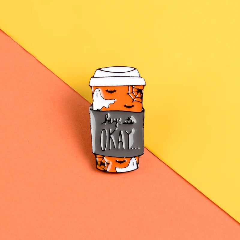 Значок эмалированный Счастливого Хэллоуина, кофейный, лунный, призрак, тыква, брошь в виде зонтика, для рюкзака, одежды, Забавный значок, ювелирное изделие, подарок