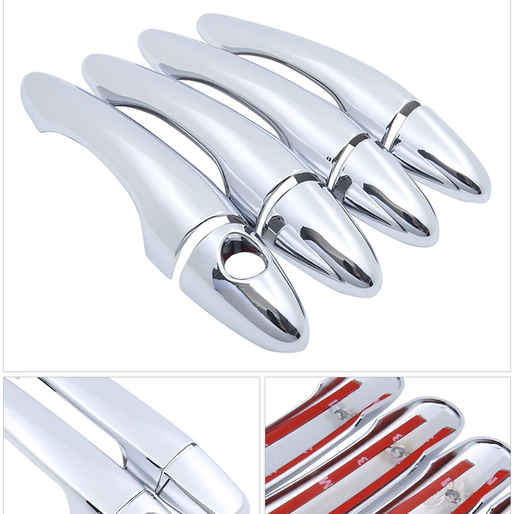 Сделайте свой автомобиль выделенным из толпы с этими 4 высококачественными стильными хромированными дверными ручками крышки! Пластмасса высокого качества придает этим покрытиям глубокий и глянцевый хром блеск! Они специально разработаны для вышеуказанных моделей и идеально подходят! Они оснащены высокопрочной клейкой лентой 3 м сзади, просто снимите ленту и нанесите! Занимает несколько секунд, никаких инструментов не требуется! Это действительно придаст вашей машине крутой новый вид!