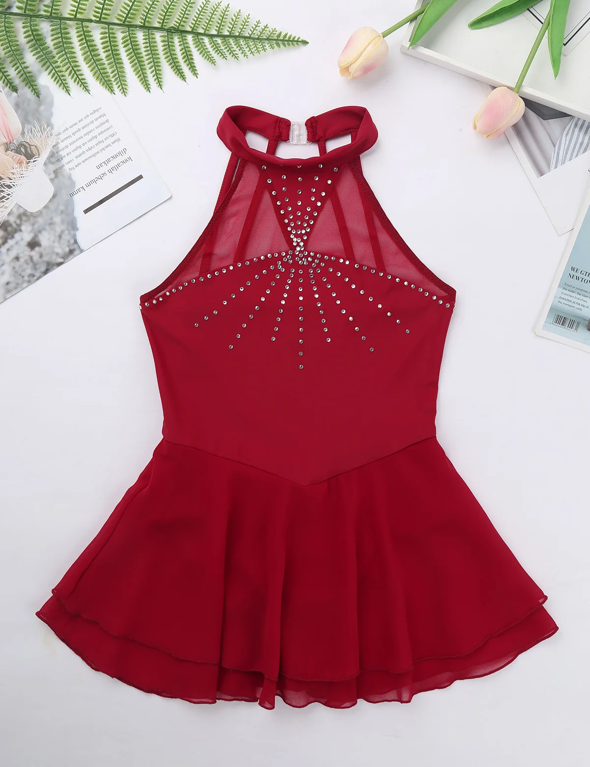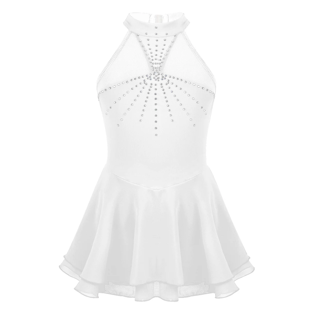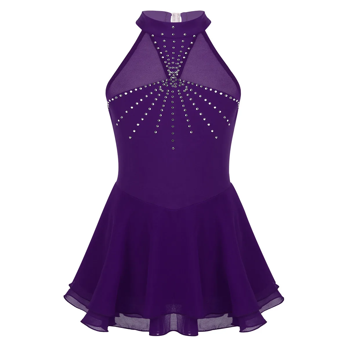 Особенности:Платье для катания на коньках изготовлено из полиэстера, сетчатого и шифонового материала, ручная стирка.Таблица размеров означает возраст для девочек, но только для общего руководства.Без рукавов, с вырезом на шее и застежкой. Сетчатое соединение между вырезом и грудью. В клетке сзади. Мягкая ткань, дышащая и удобная в носке.2 слоя гофрированный шифон юбка крепятся вокруг талии. Дизайн с сверкающие стразы «кроше» для того, чтобы повысить уровень доверия и зрелищ.Подходит для фигурного катания, катания на льду, катания на роликах, сцены и т. д.
