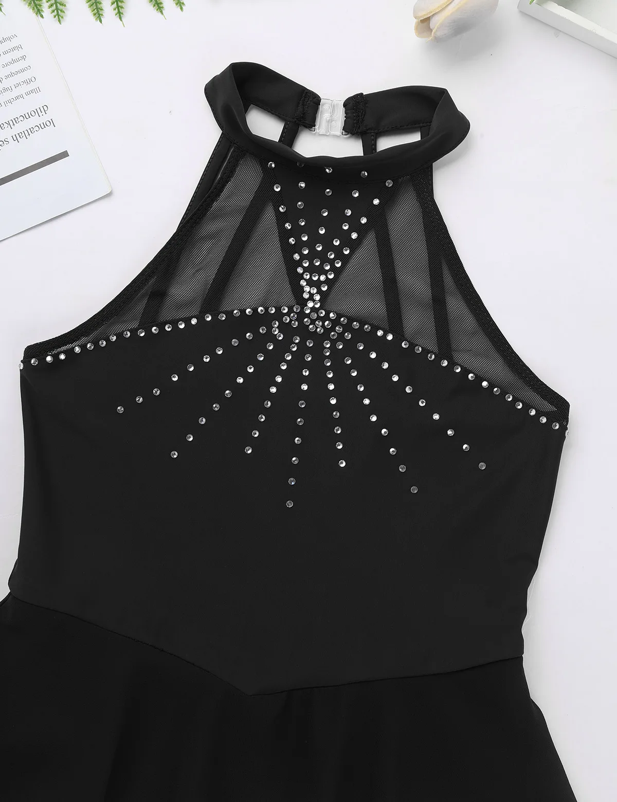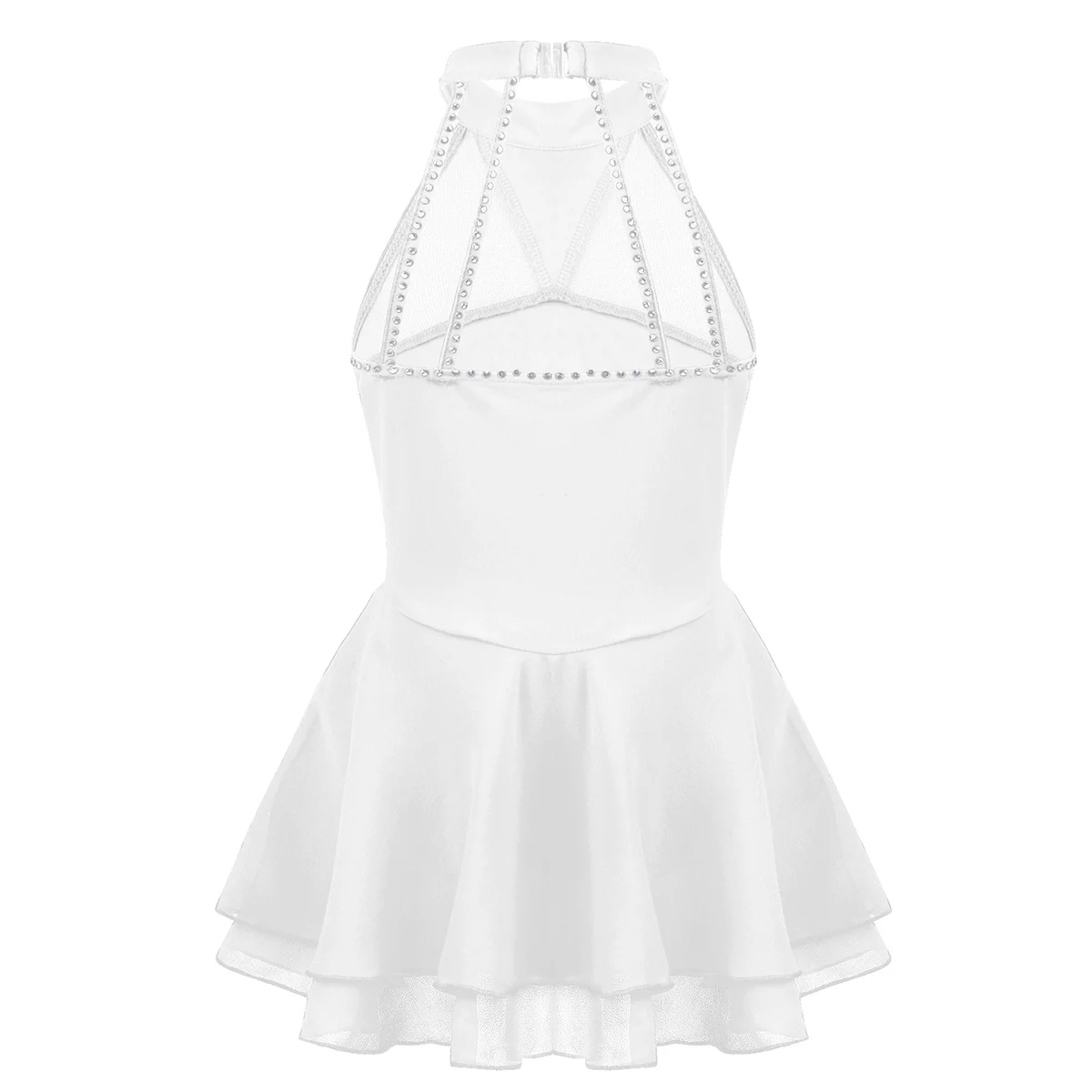 Детские танцевальные костюмы для девочек, блестящие стразы, сетчатая комбинированная фигурка, платье для катания на роликах, гимнастическое трико, танцевальное платье