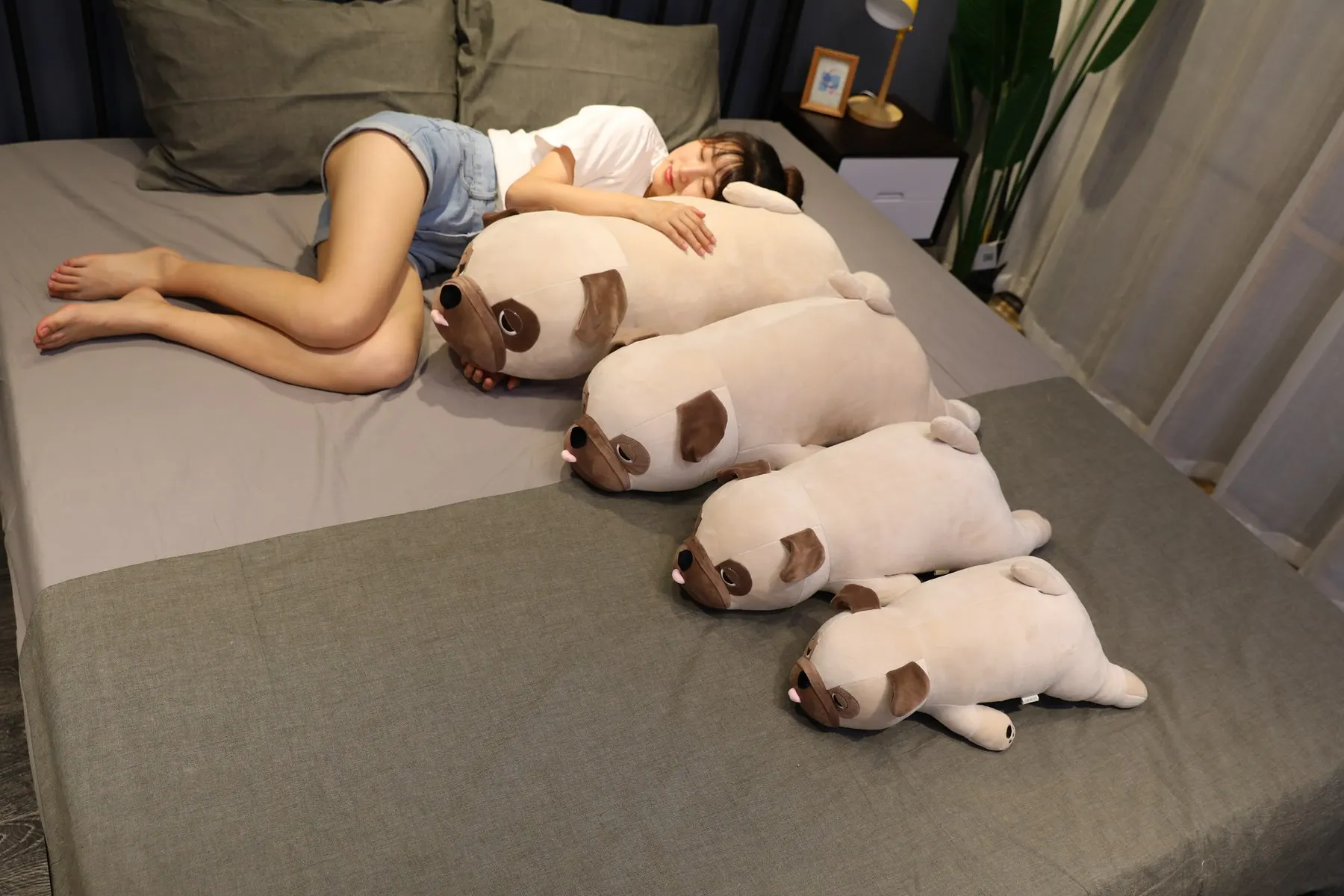 Плюшевые игрушки в виде мопса, большого размера, 55-90 см