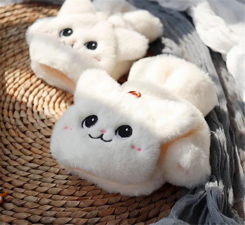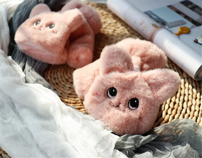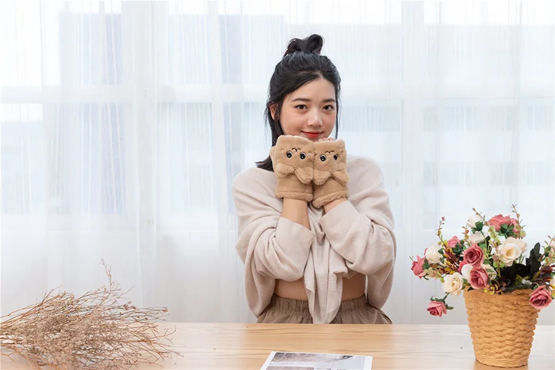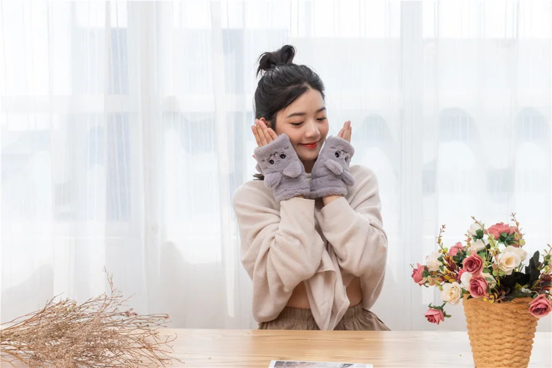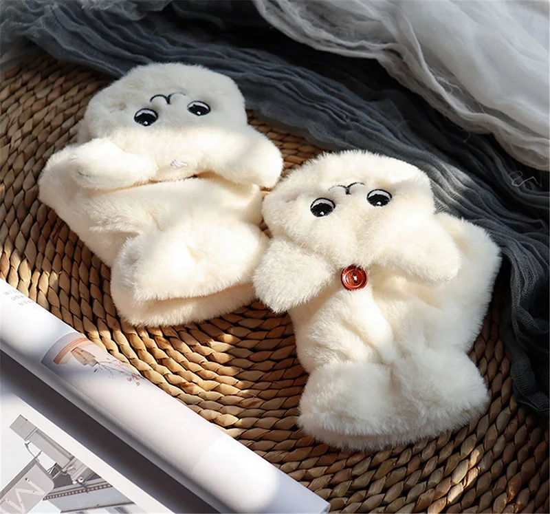 Перчатки женские зимние из кроличьего меха, с откидными пальцами, теплые, плюшевые, толстые, милые, для сенсорного экрана, E65