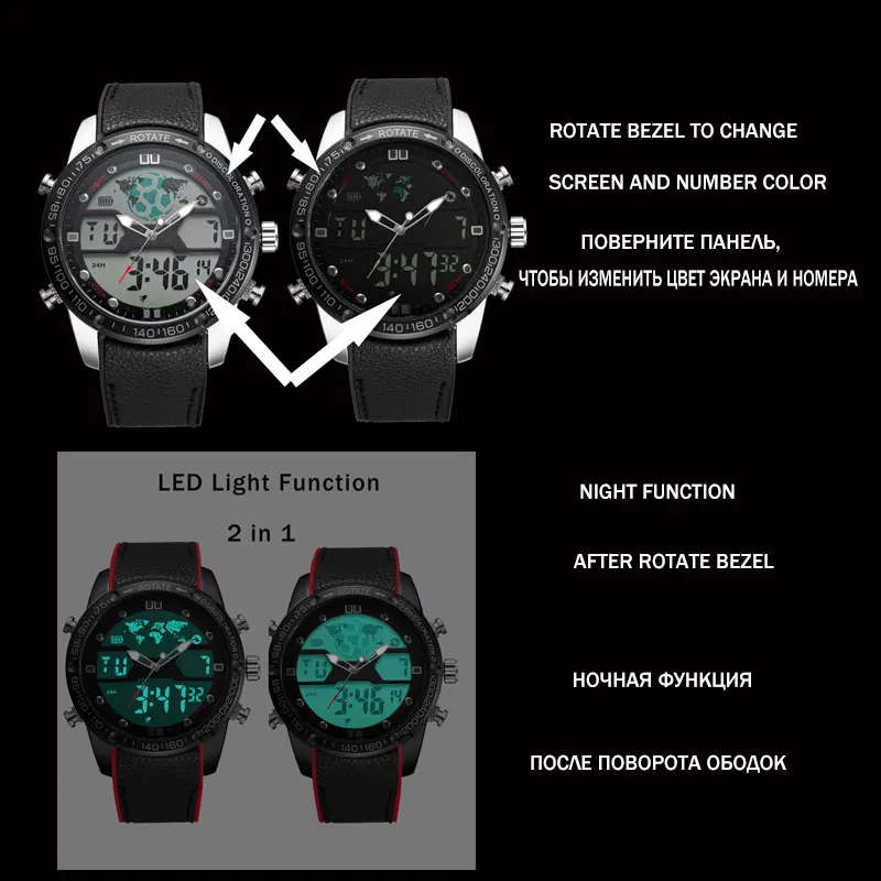 Часы наручные BOAMIGO Мужские кварцевые, спортивные светодиодные электронные цифровые аналоговые, водонепроницаемые в стиле милитари