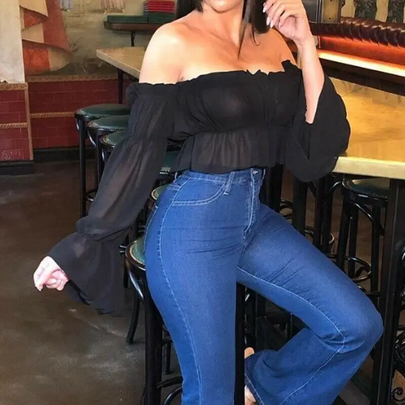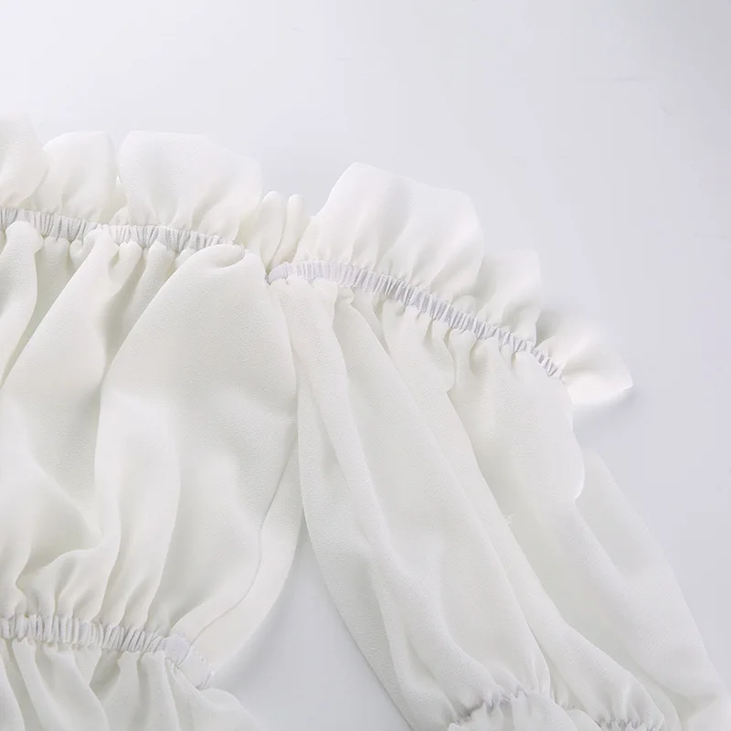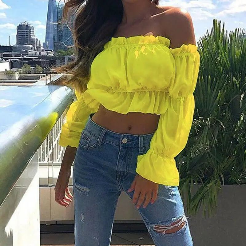 Новые модные женские шифоновые длинные пышные рукава с открытыми плечами Короткие Топы Блузы Свободная Повседневная Блузка женская сексуальная горячая Распродажа корп Топ рубашка
