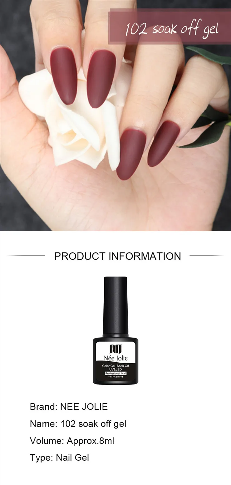 NEE JOLIE 8 мл матирующий Гель-лак отмачиваемый УФ-Гель-лак Одноцветный стойкий гель для дизайна ногтей матовый верхний слой