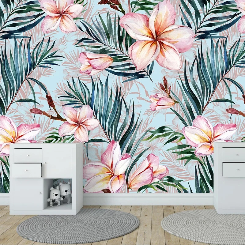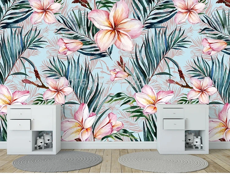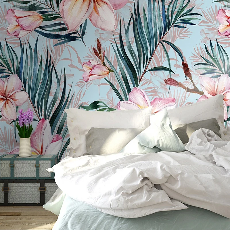Настенные обои на заказ, современные креативные настенные росписи с розовыми цветами и листьями, ручная роспись, украшение для спальни, гостиной, отеля