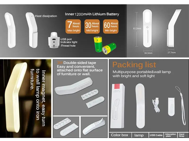 Отличные переносные светильники, яркость регулируется плавно. Режим сохраняется при повторном включении. Держатели на клейкой ленте. Лампа крепится к держателям надёжно по направляющим. Доставка в Беларусь за 36 дней.