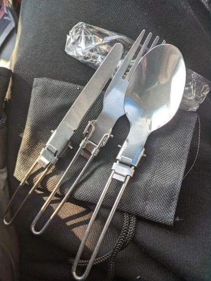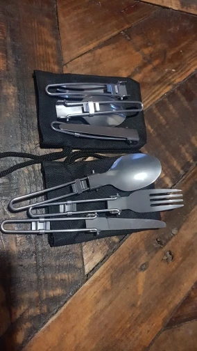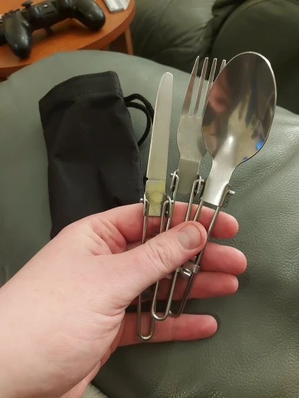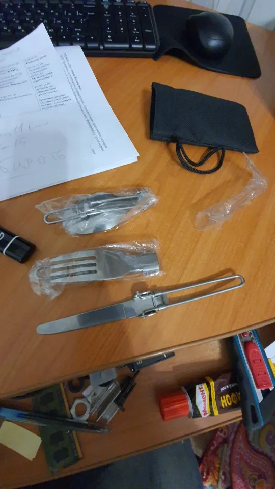хороший походный наборчик, простой как спичка, не люфтит, не скрипит, однако ножик нужно затачивать, так как он "туповат". заказ приехал через десять дней после истечения срока защиты, открыл спор, но пока AliExpress обжаловал, товар всё-таки пришел и я отменил претензию на возврат средств