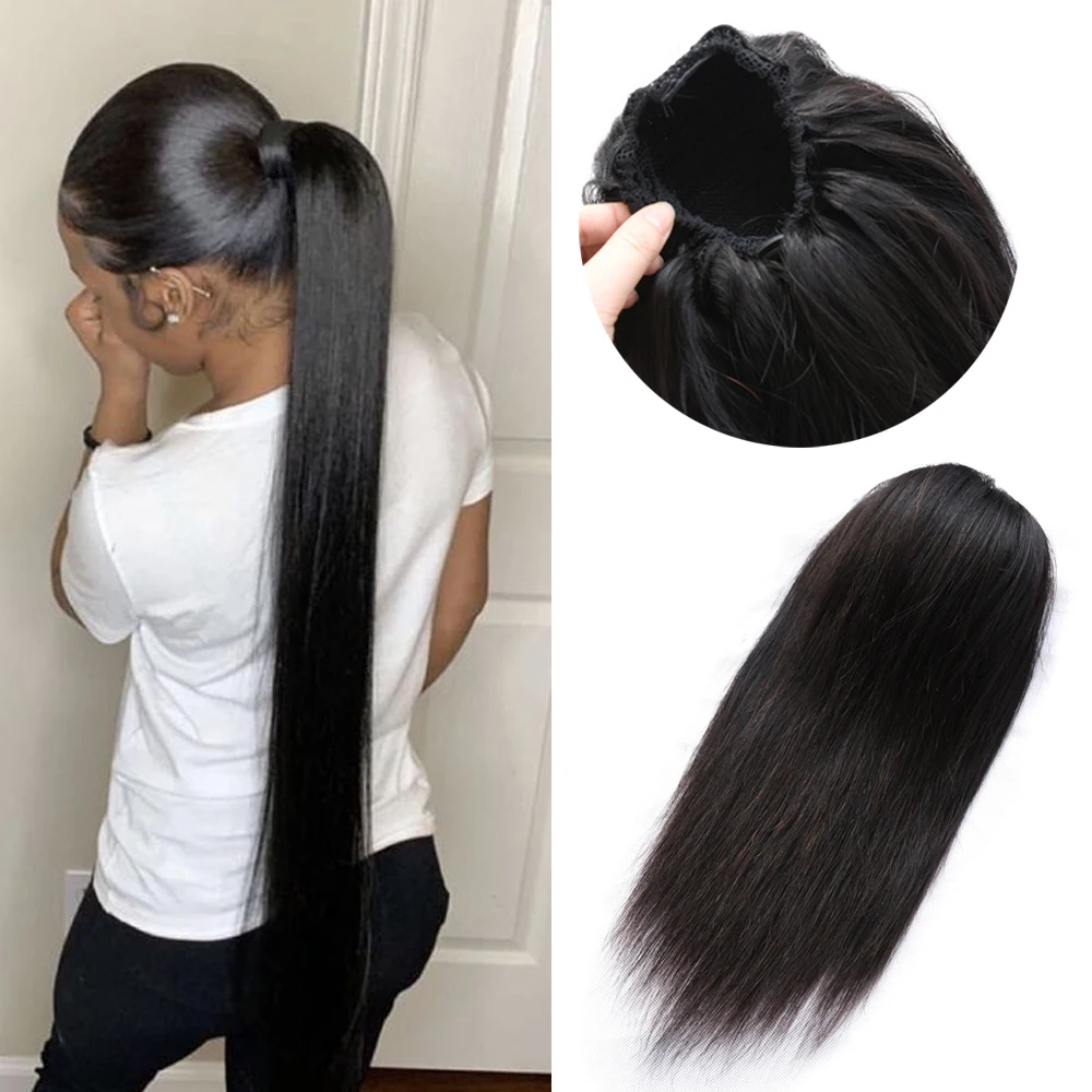 24 дюймов прямые человеческие волосы, "конский хвост", бразильские ...
