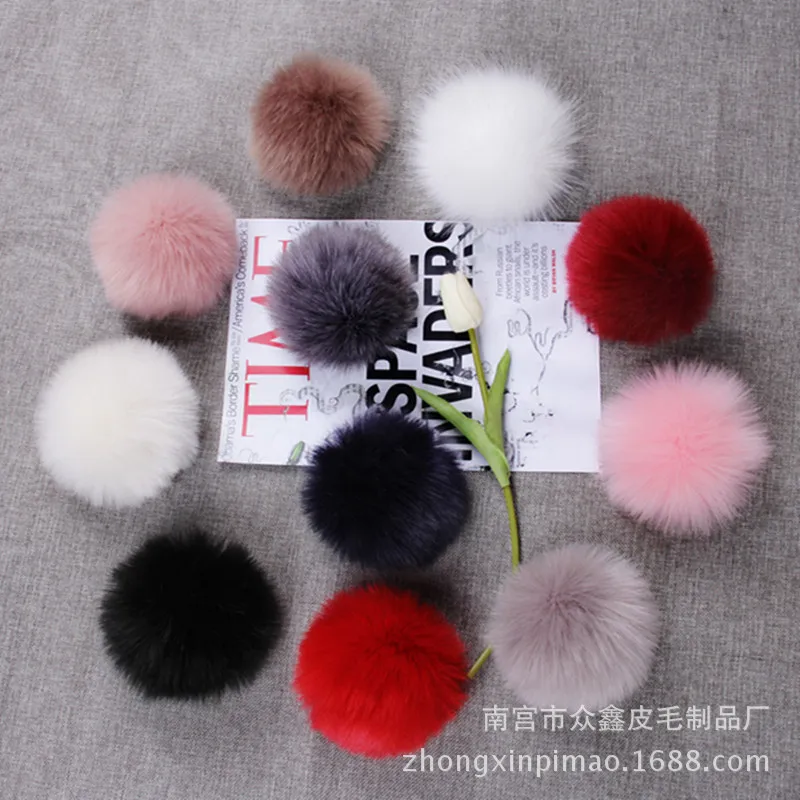 8 см натуральный мех кролика рекс помпон пушистый DIY зимняя шапка ...