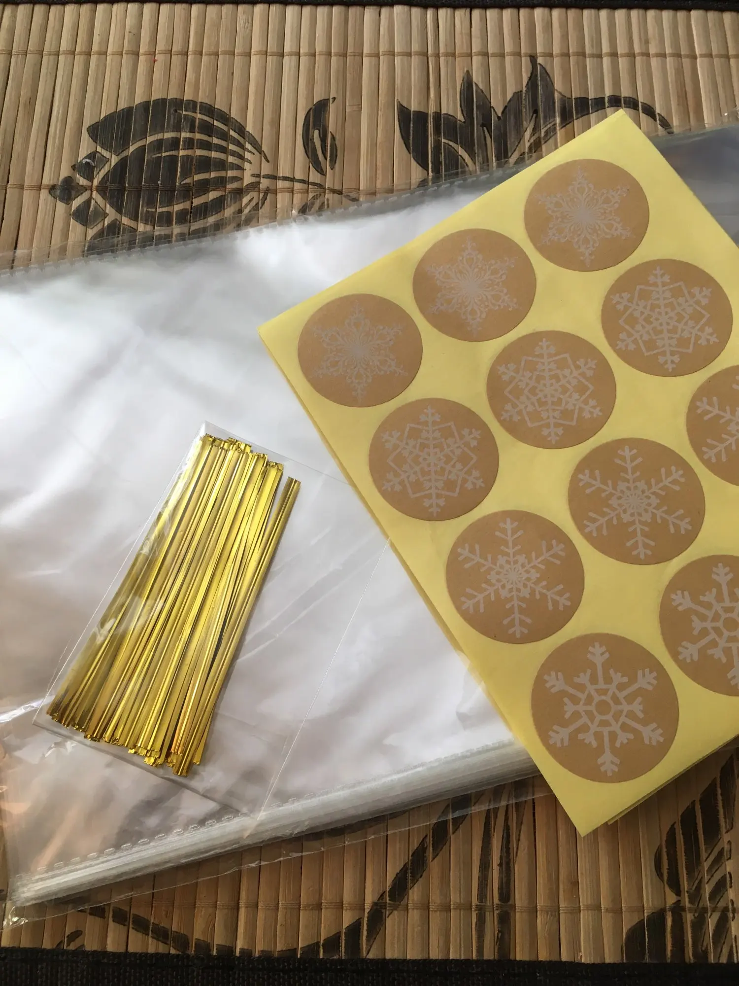 Прозрачные пластиковые пакеты для конфет, леденцов, печенья, упаковочный пакет с закручивающимися завязками, стикер снежинки для вечеринок, тостов, хлеба