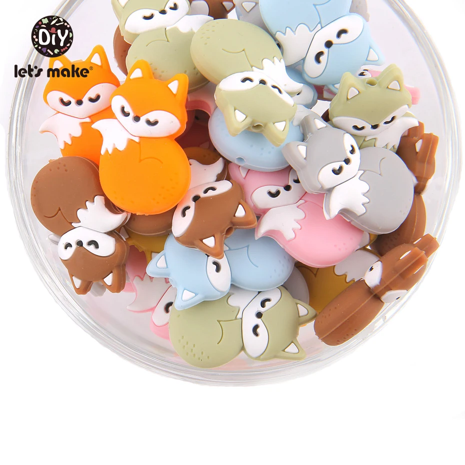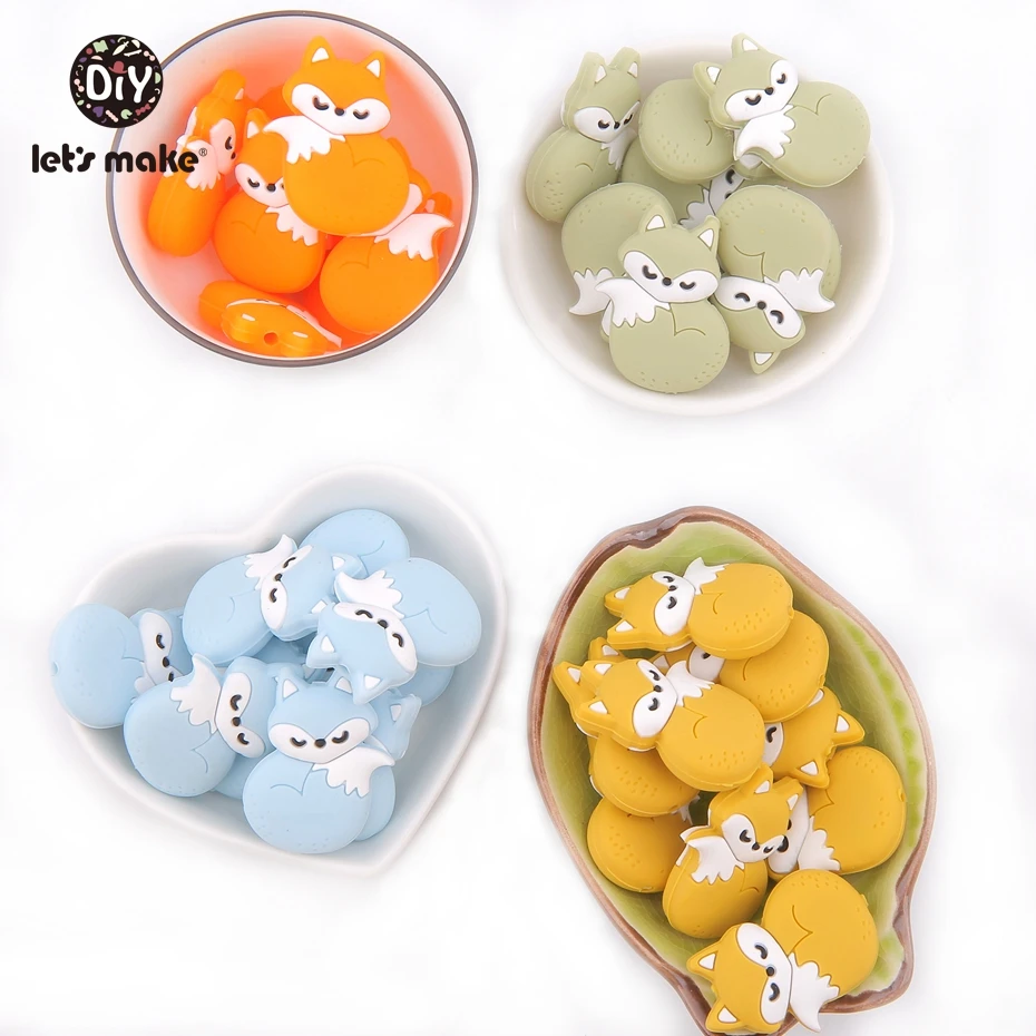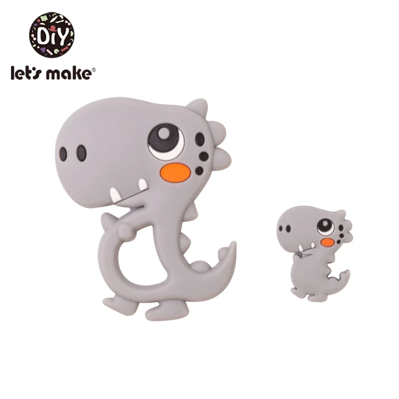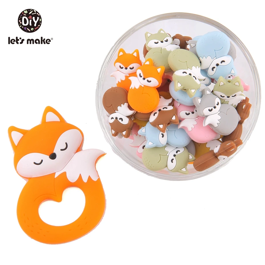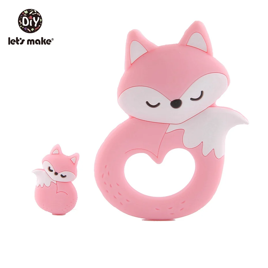 Детский силиконовый Прорезыватель для зубов Let's Make 2 шт.компл., животные, лиса, динозавр, кролик, подвеска, крошечные Силиконовые Прорезыватели для зубов