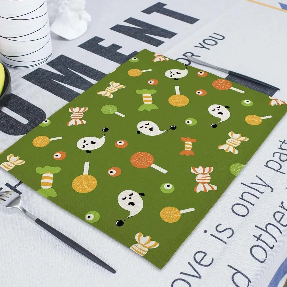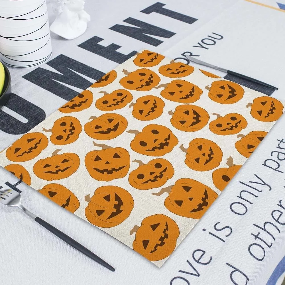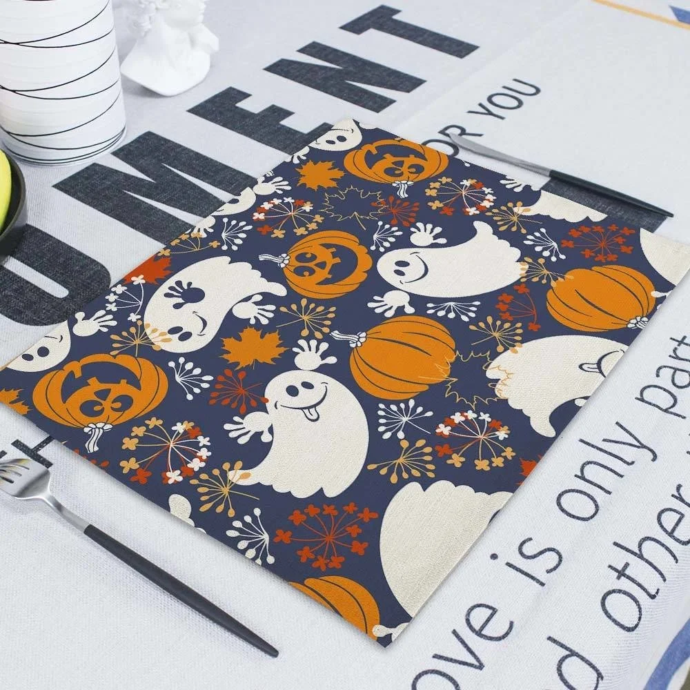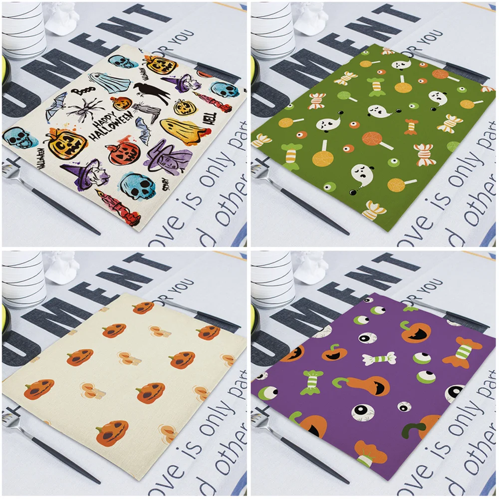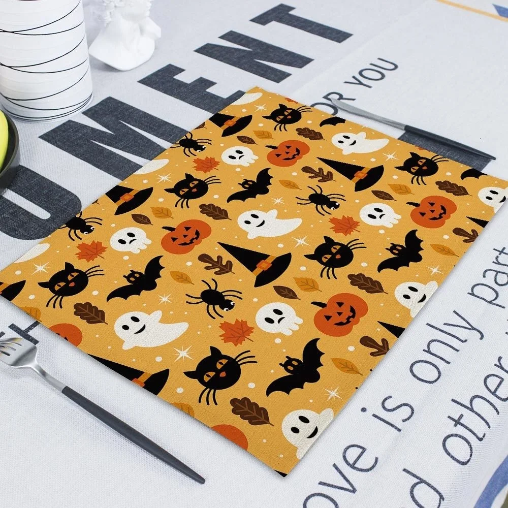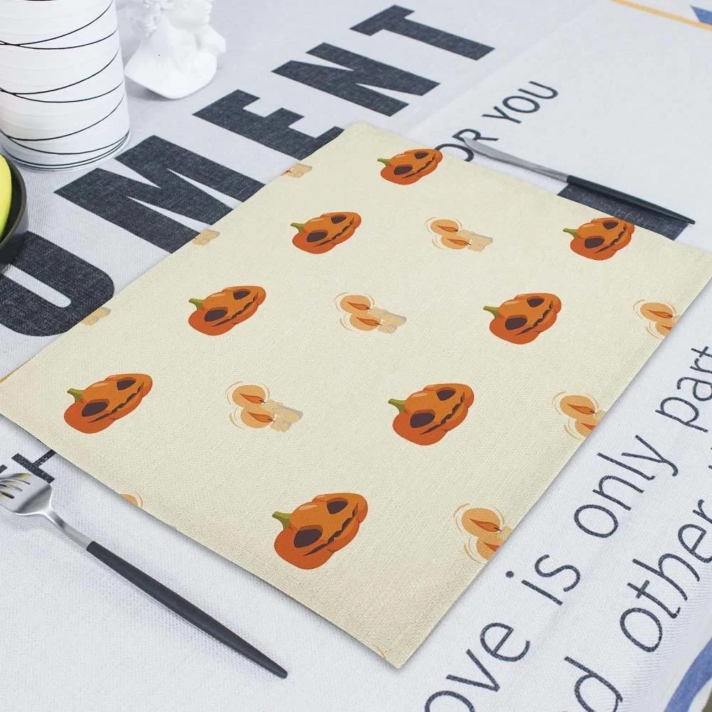 Салфетки для Хэллоуина 42x32 см, скатерти, тыква, домашний ужас, череп на Хэллоуин, льняные украшения для кухни, столовые аксессуары, коврик
