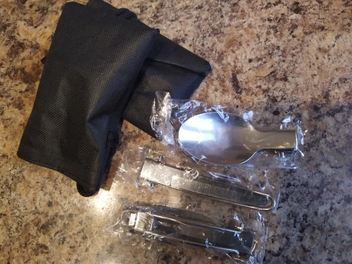 Отличный походный набор столовых приборов. Покупкой доволен! Доукомплектовал его открывашкой и штопором, купленными здесь же на Алике. Всем мира и добра!