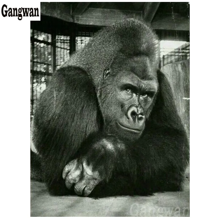 5d алмазная живопись "сделай сам", наклейка с рисунком гориллы, полностью квадратная, круглая, дрель, обезьяна, животное, хобби, украшение, Алмазная мозаика, настенная краска