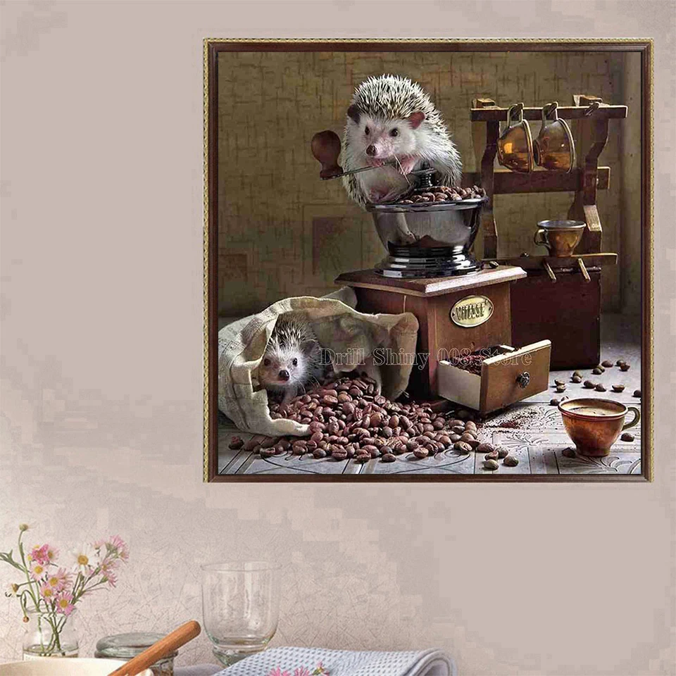 5D Сделай Сам алмазная живопись животных Ежик полный дрель декор из алмазной мозаики картины Стразы Кофе Декор для дома подарок