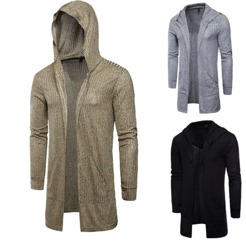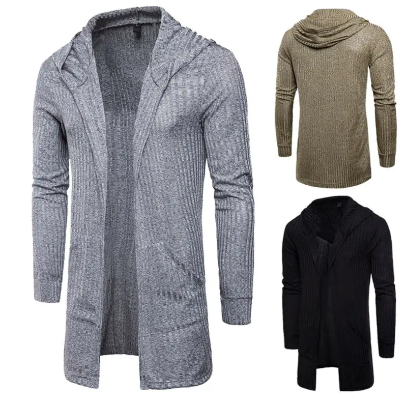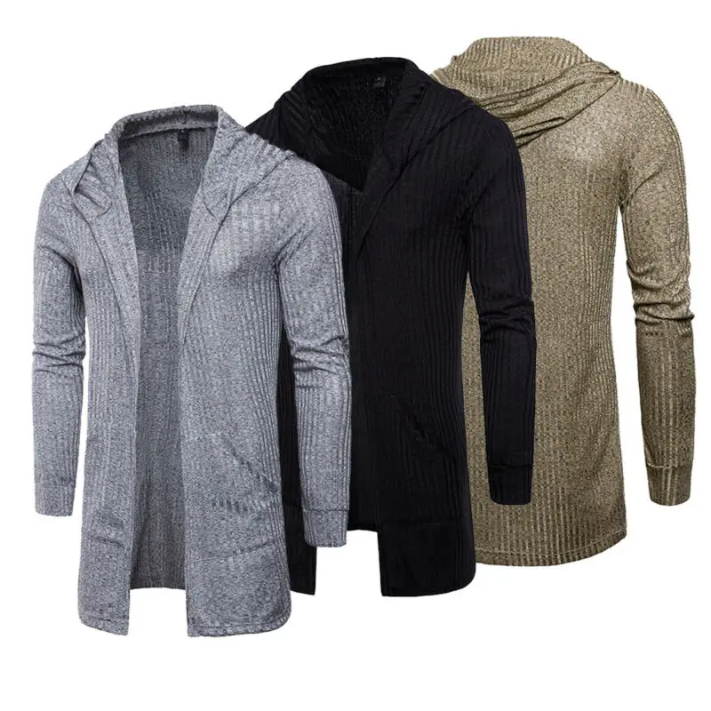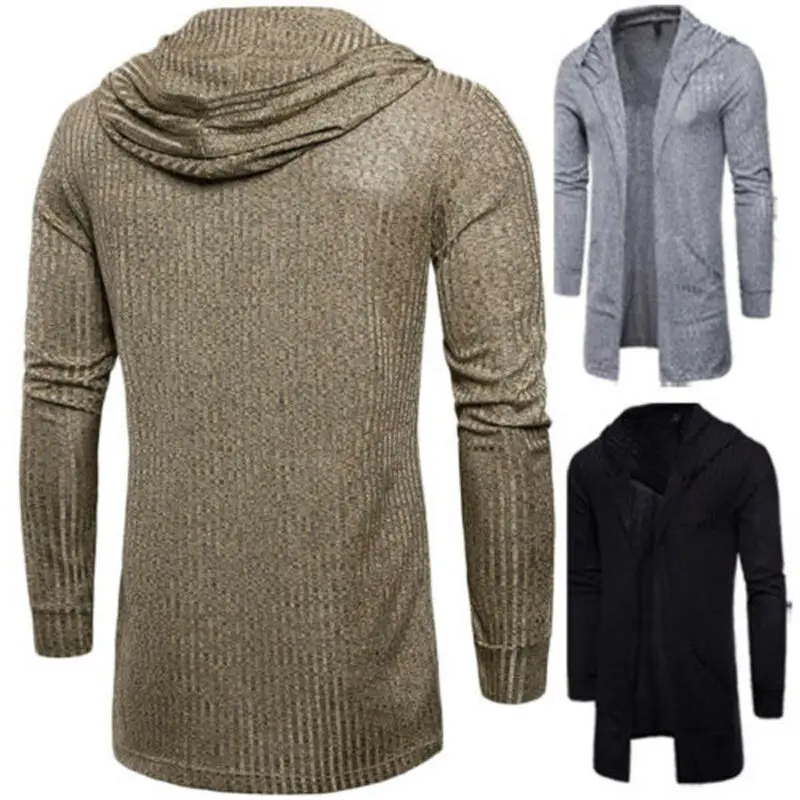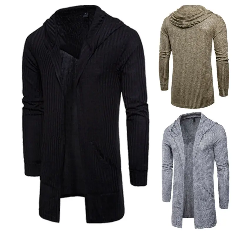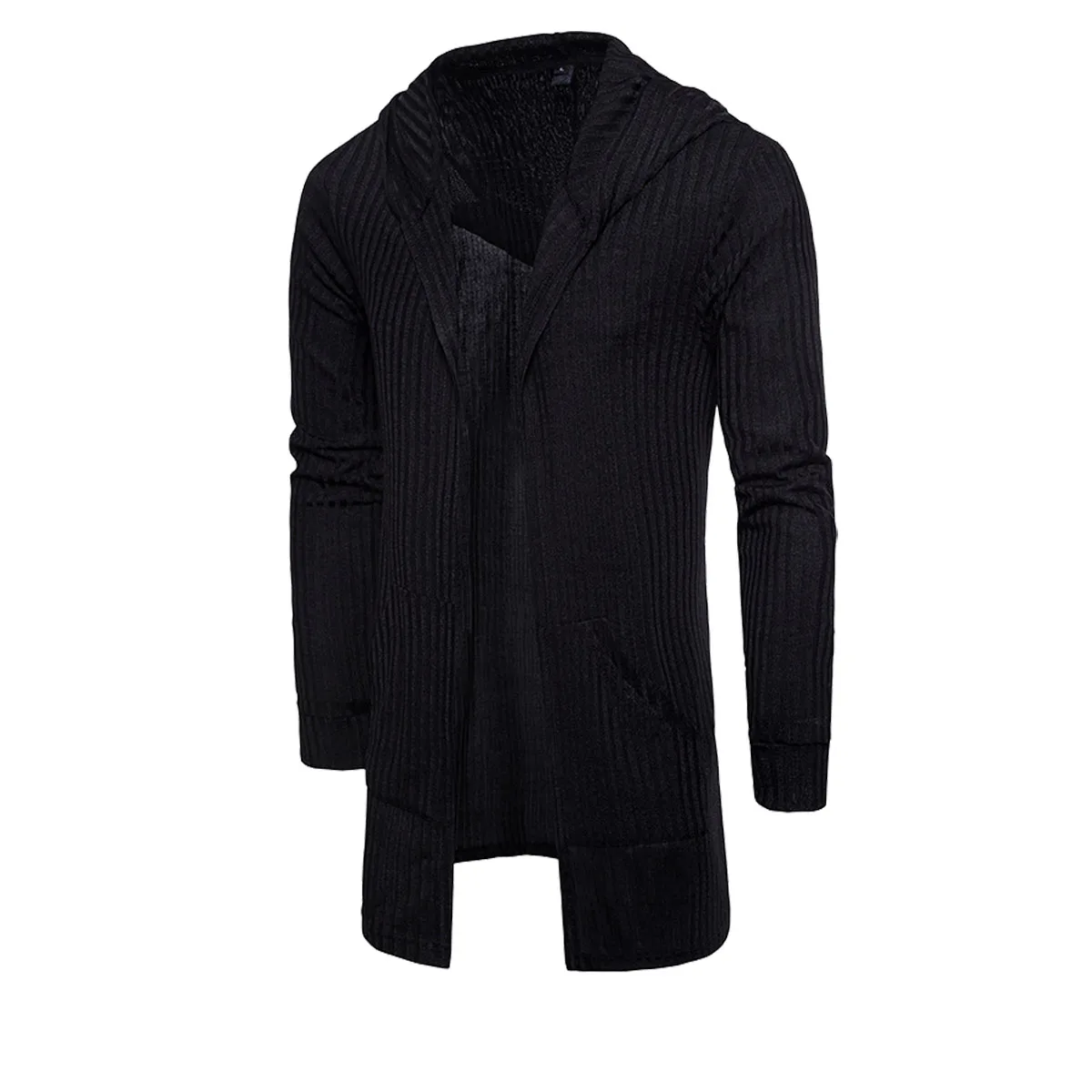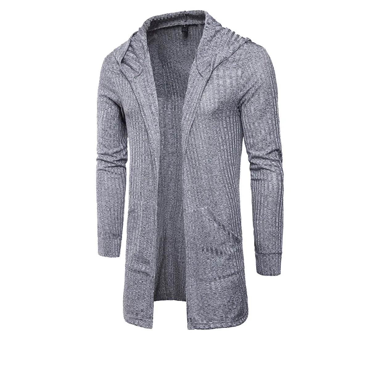 Кардиган Мужской трикотажный, облегающий длинный джемпер с капюшоном, длинное пальто, трикотажный кардиган, верхняя одежда, осень-зима