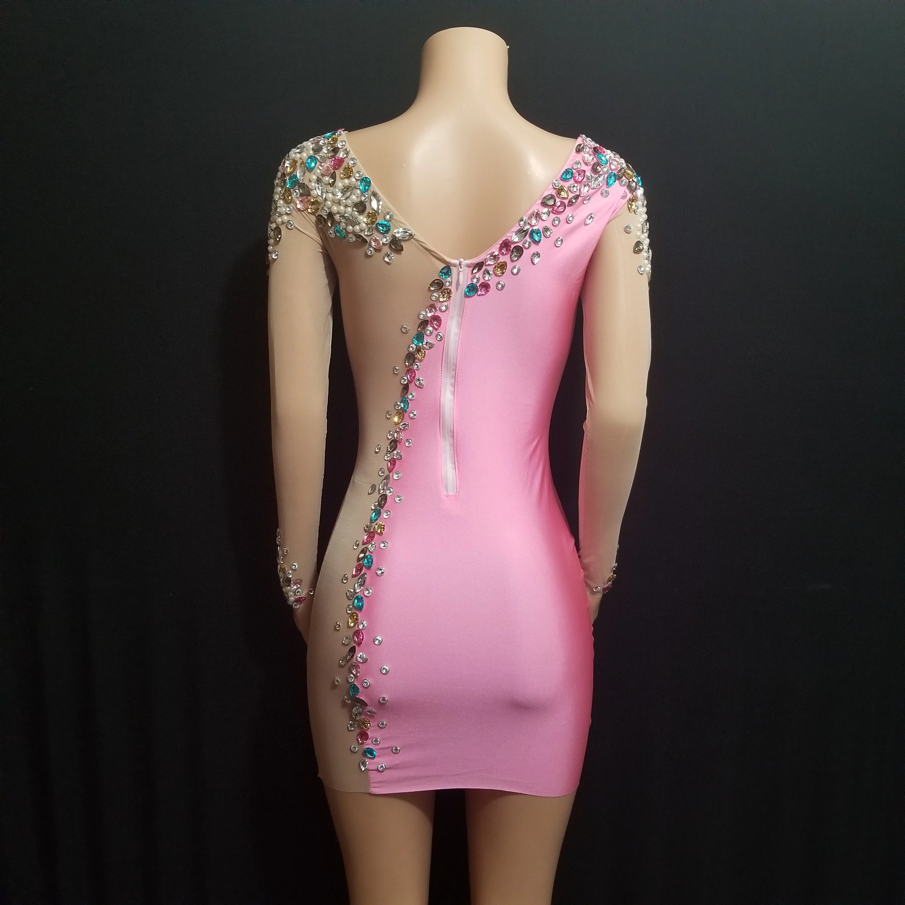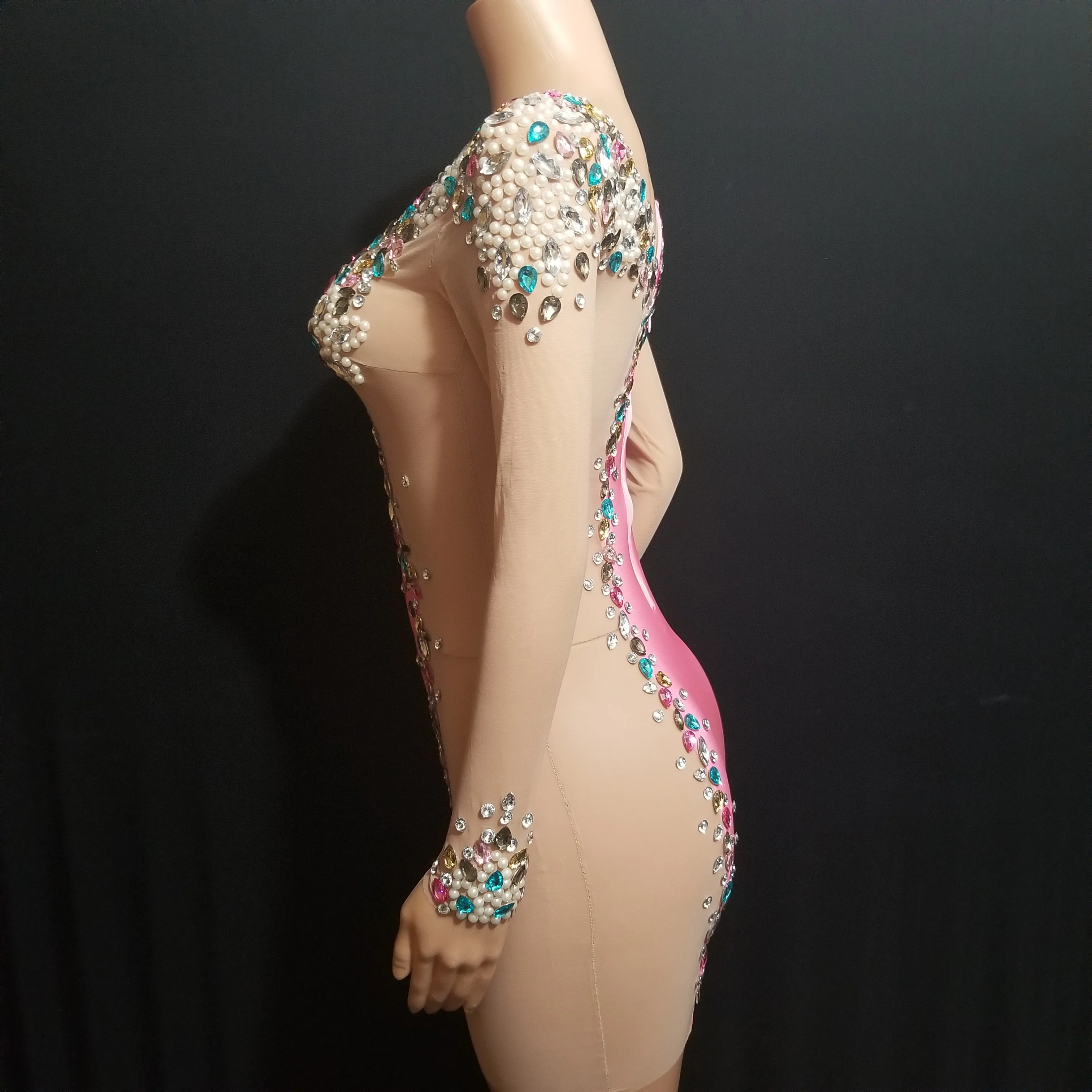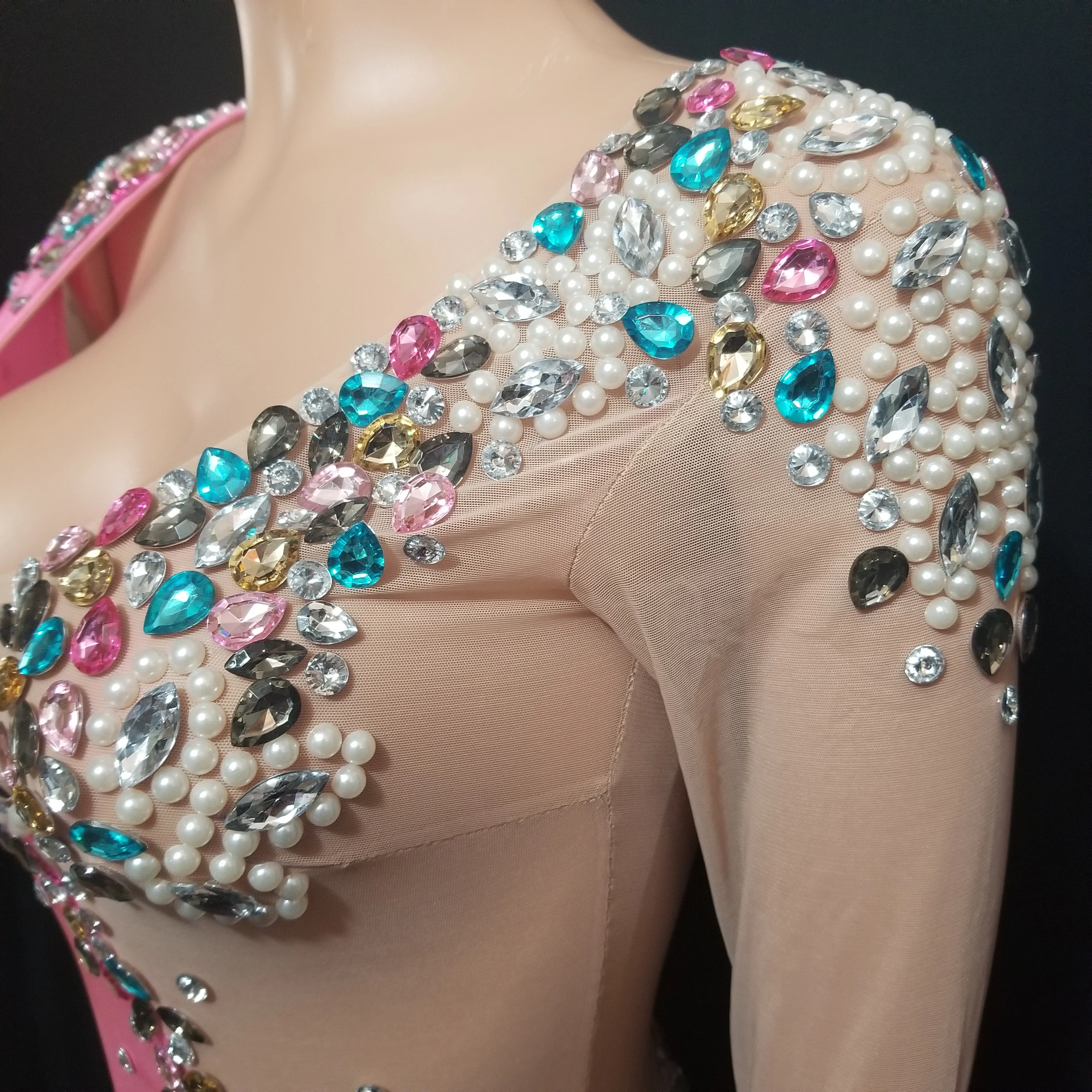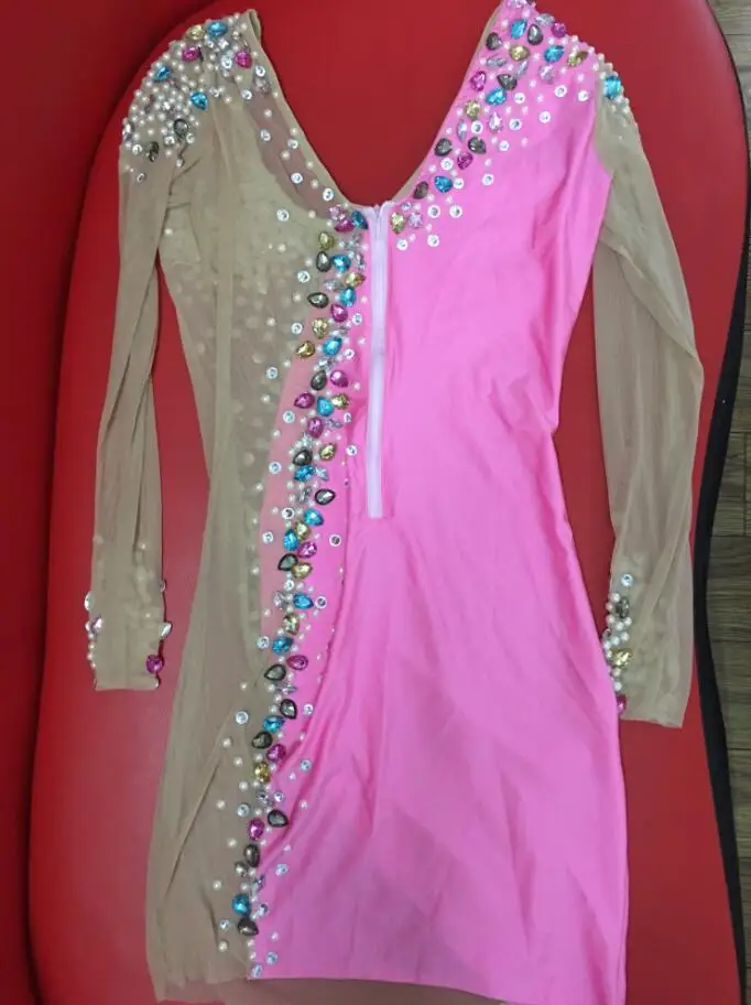 Женское Прозрачное платье с жемчугом, розовое платье для танцев