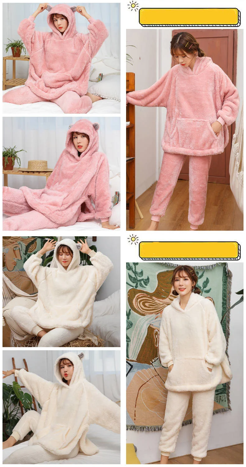 Комплект пижамный женский, зимний, с длинным рукавом, в виде животных