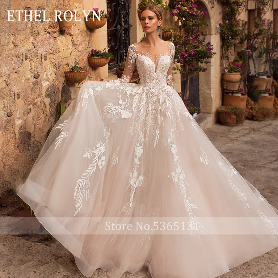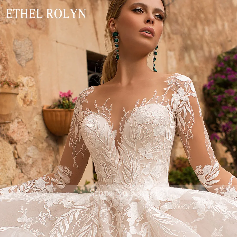 Романтическое свадебное платье ETHEL ROLYN, ТРАПЕЦИЕВИДНОЕ, с длинным рукавом, на пуговицах, с аппликацией, свадебное платье
