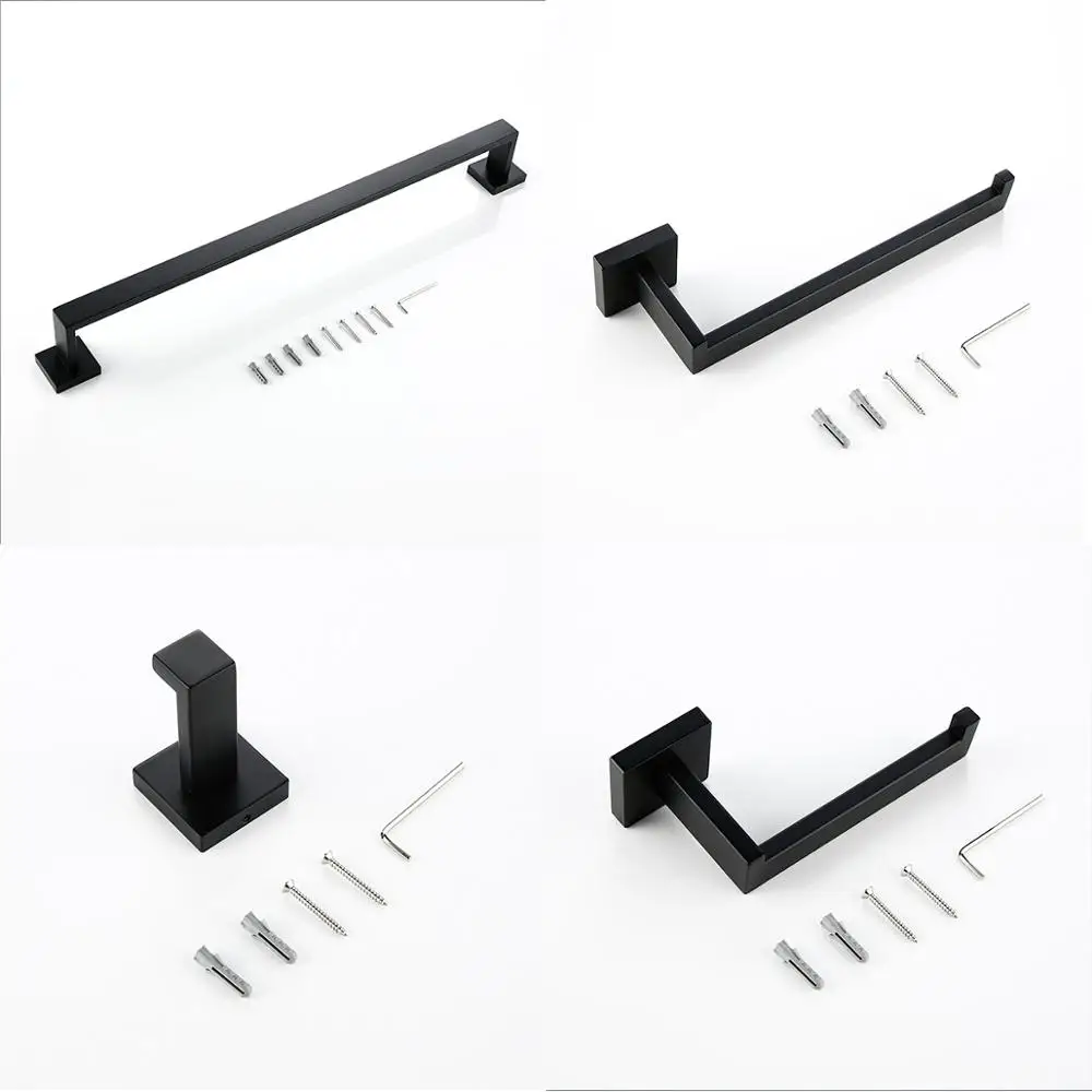 Аксессуары для ванной комнаты, набор оборудования для ванной, черный крючок для халата, вешалка для полотенец, стойка для бара, держатель для бумаги, полка