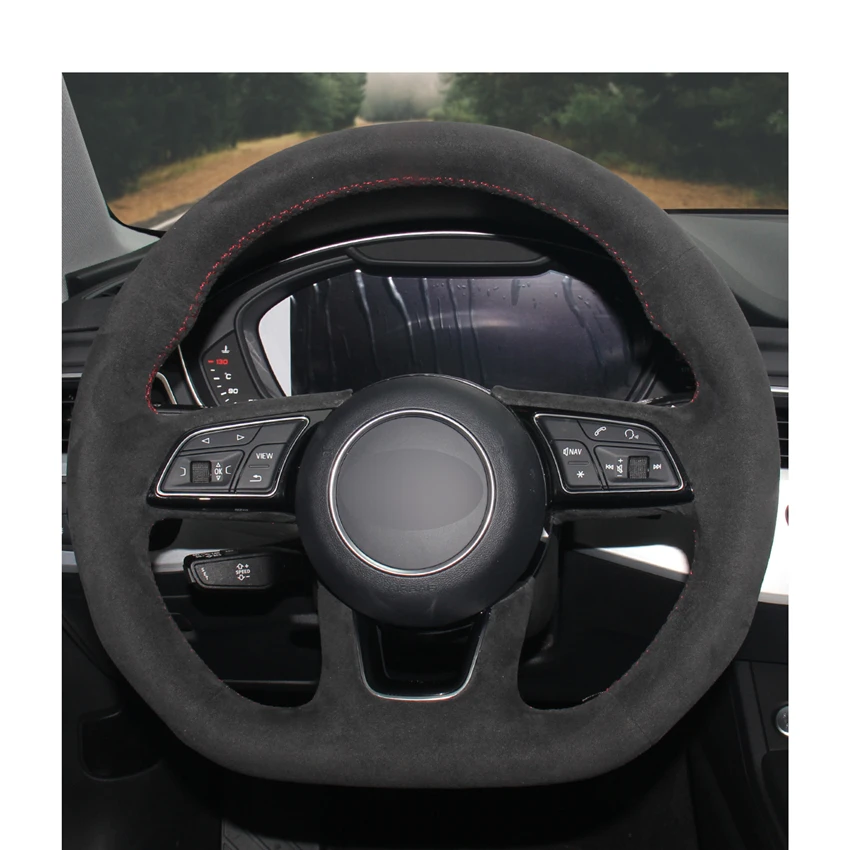 ПРИШИТАЯ вручную синтетическая черная замша чехол рулевого колеса автомобиля для Audi A3 8V A4 B9 Avant A5 F5 A1 8X Sportback Q2 2016-2019 2019