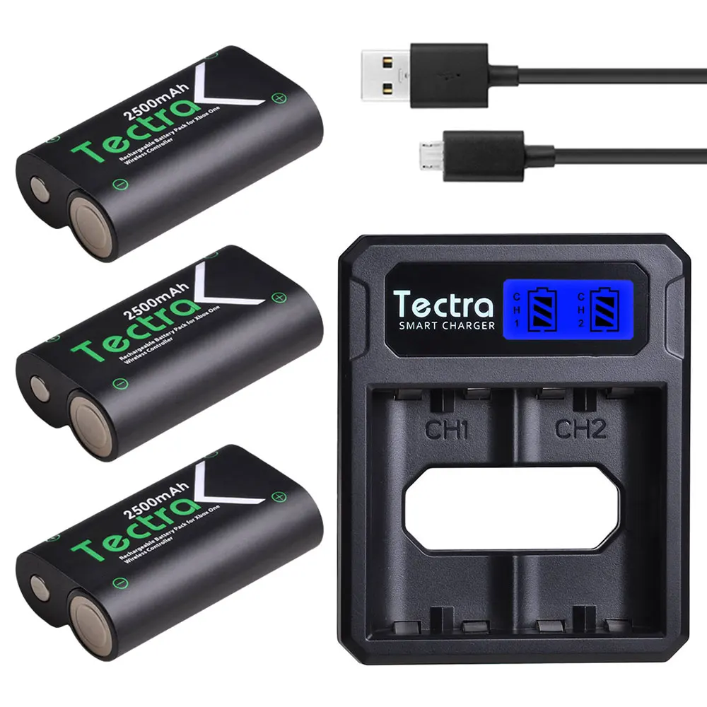Аккумулятор 2500мАч, 3 шт., зарядное устройство с двумя USB и ЖК-дисплеем в комплекте, для беспроводного геймпада Xbox One, Xbox One S, Xbox One X, Xbox One Elite